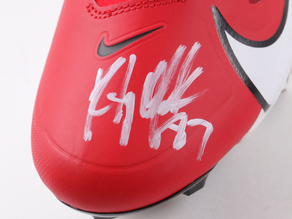 Nike football cleat, size 10. Cleat has been hand-signed by Rob Gronkowski (New England Patriots).