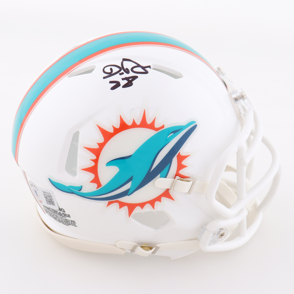 Riddell Miami Dolphins speed mini helmet. Hand-signed by De’Von Achane.