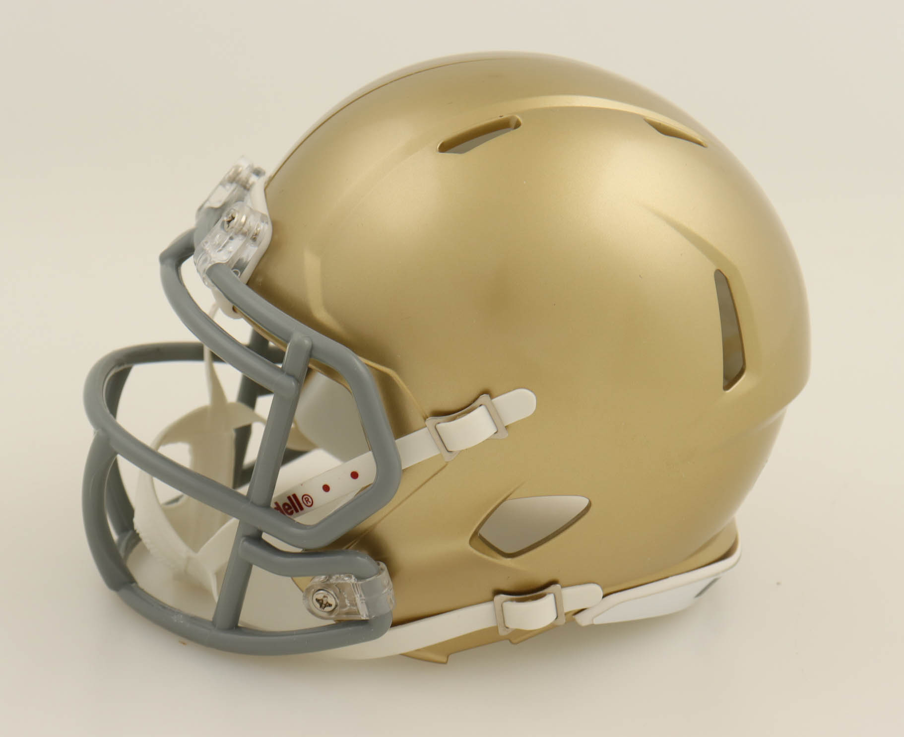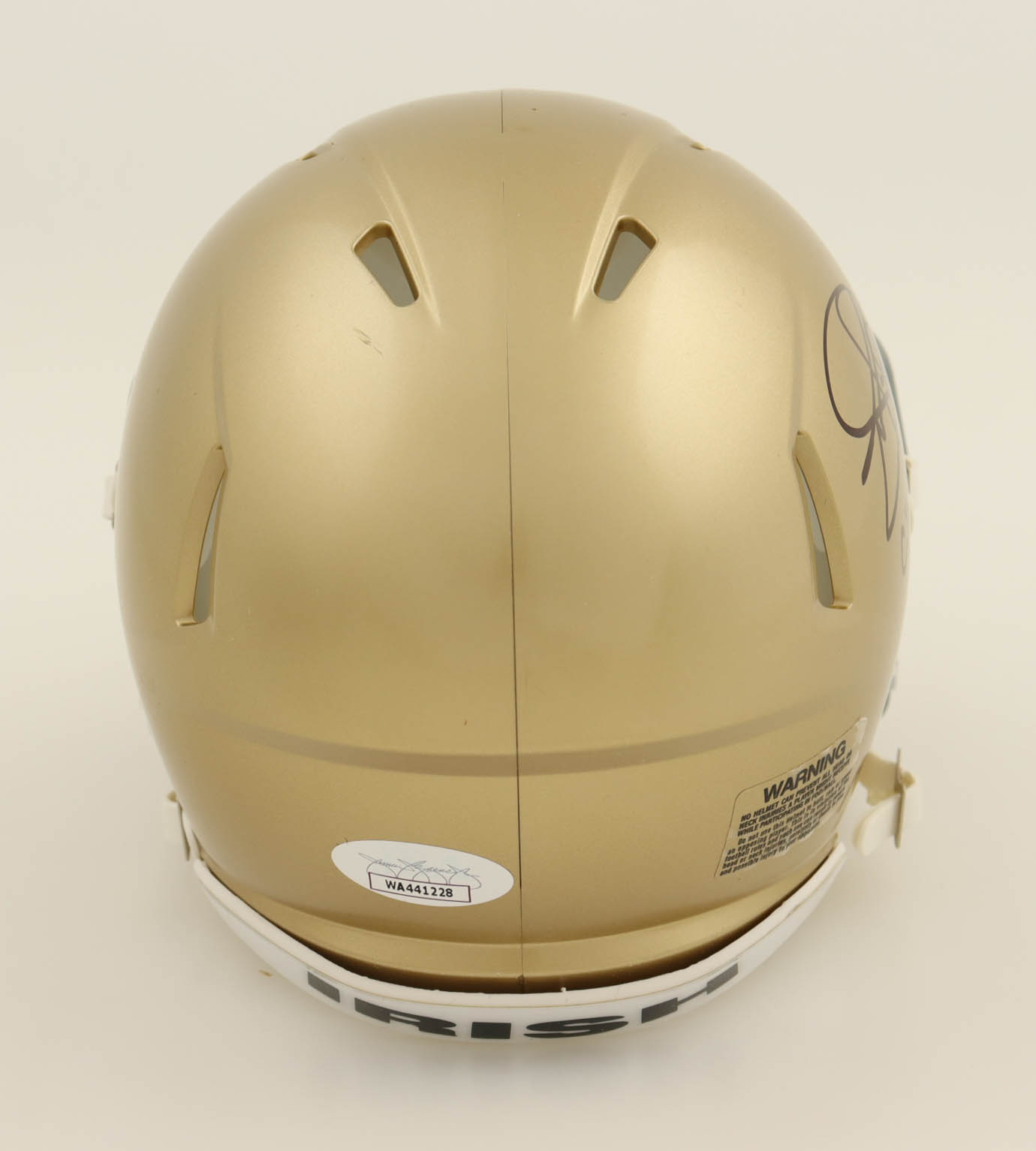 Riddell Notre Dame Fighting Irish Speed mini helmet has been hand-signed and inscribed by Joe Theismann (HOF).