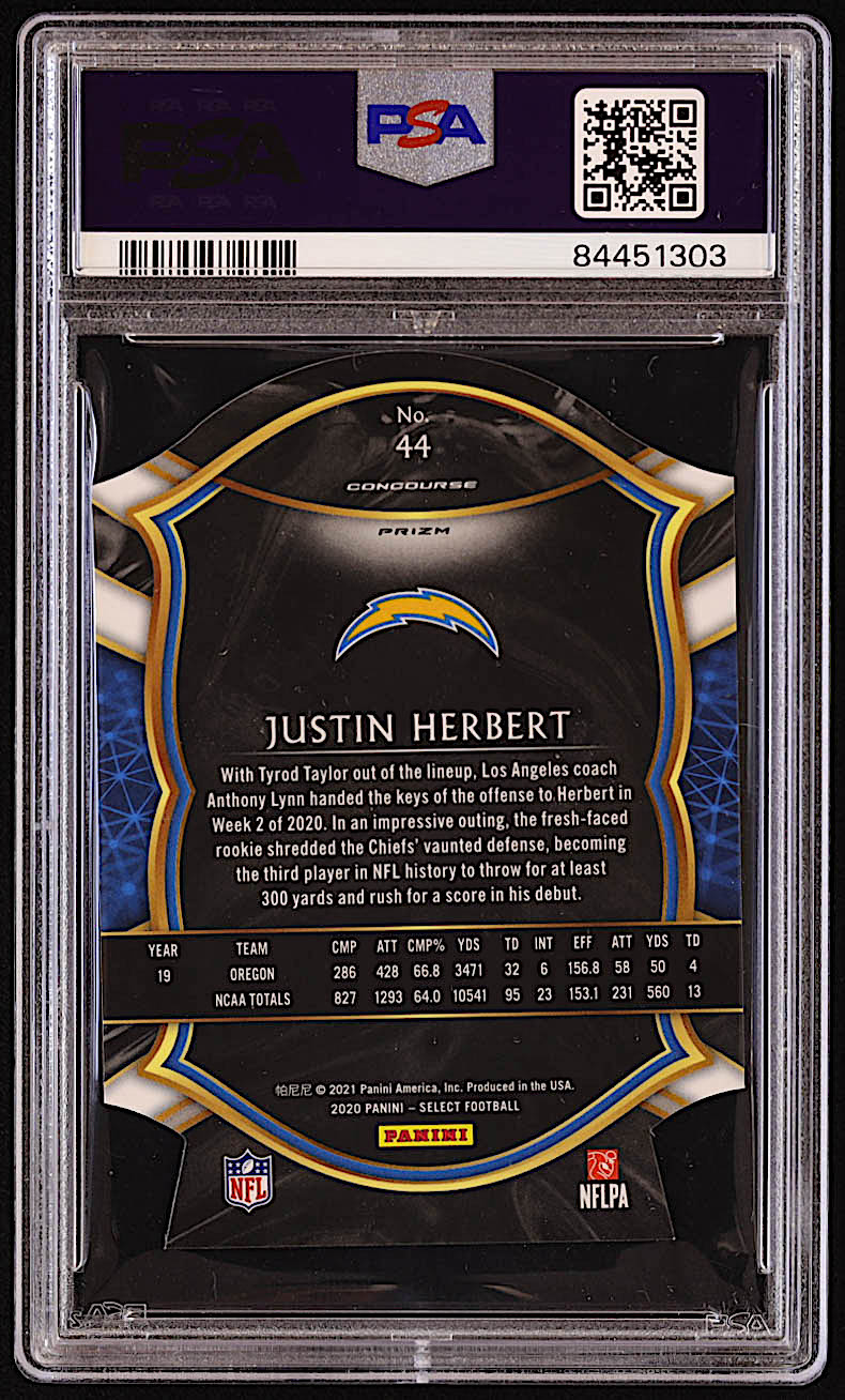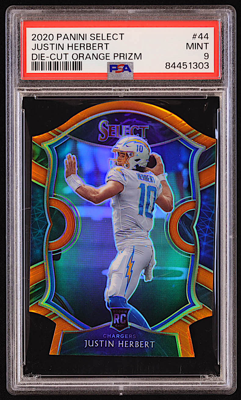 Justin Herbert 2020 Select Prizm Orange Die Cut #44 RC (PSA 9)
