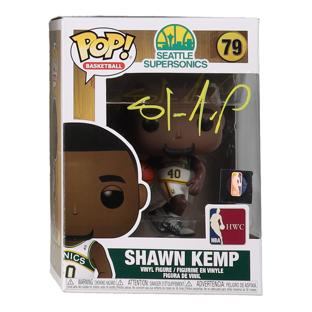 Funko Pop! figure measures approximately 4" tall and comes in original packaging. Hand-signed by Shawn Kemp (Seattle Supersonics).