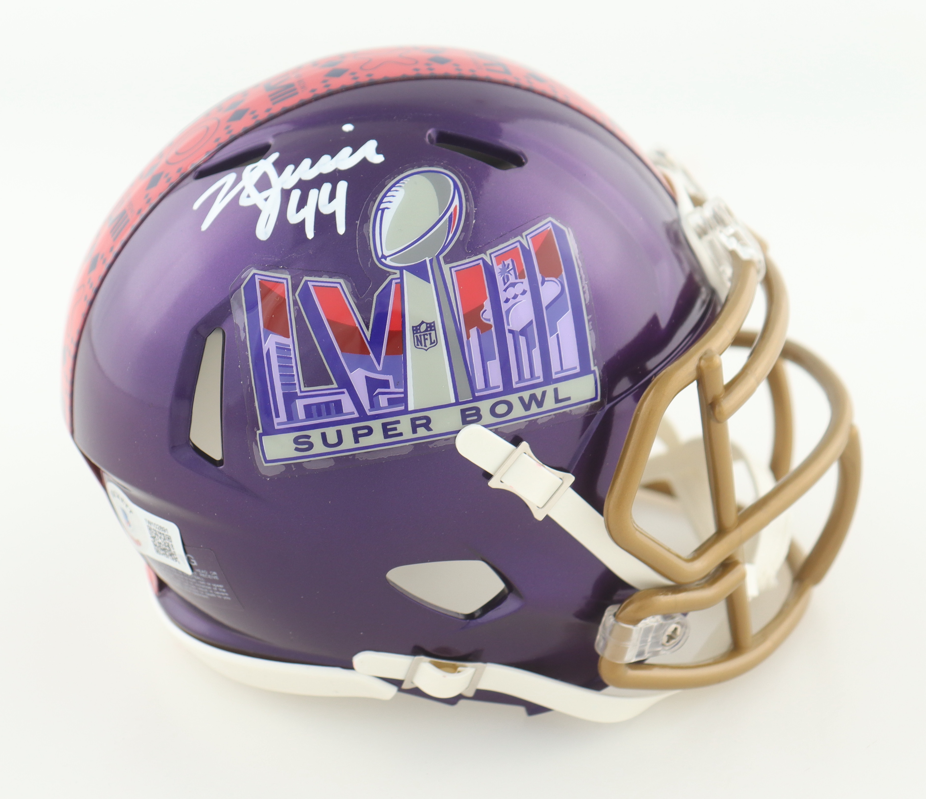 Riddell Super Bowl LVIII logo mini speed helmet. Hand-signed by Kyle Juszczyk.