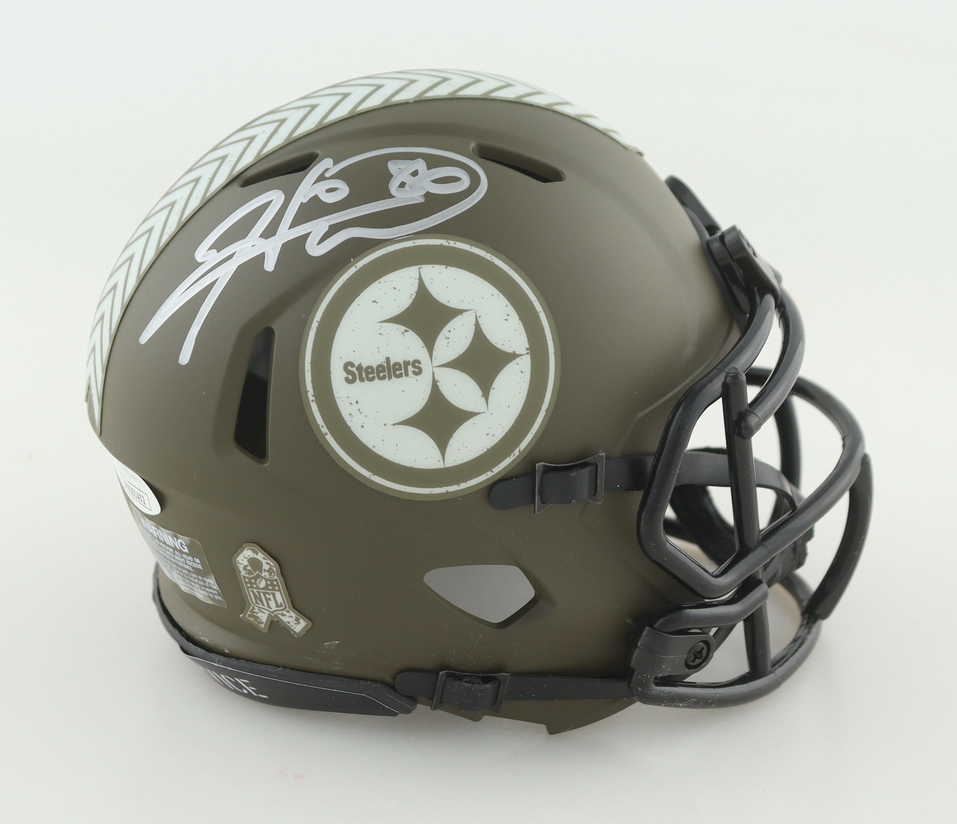 Riddell Pittsburgh Steelers Salute to Service Alternate Speed mini helmet. Hand-signed by Hines Ward.
