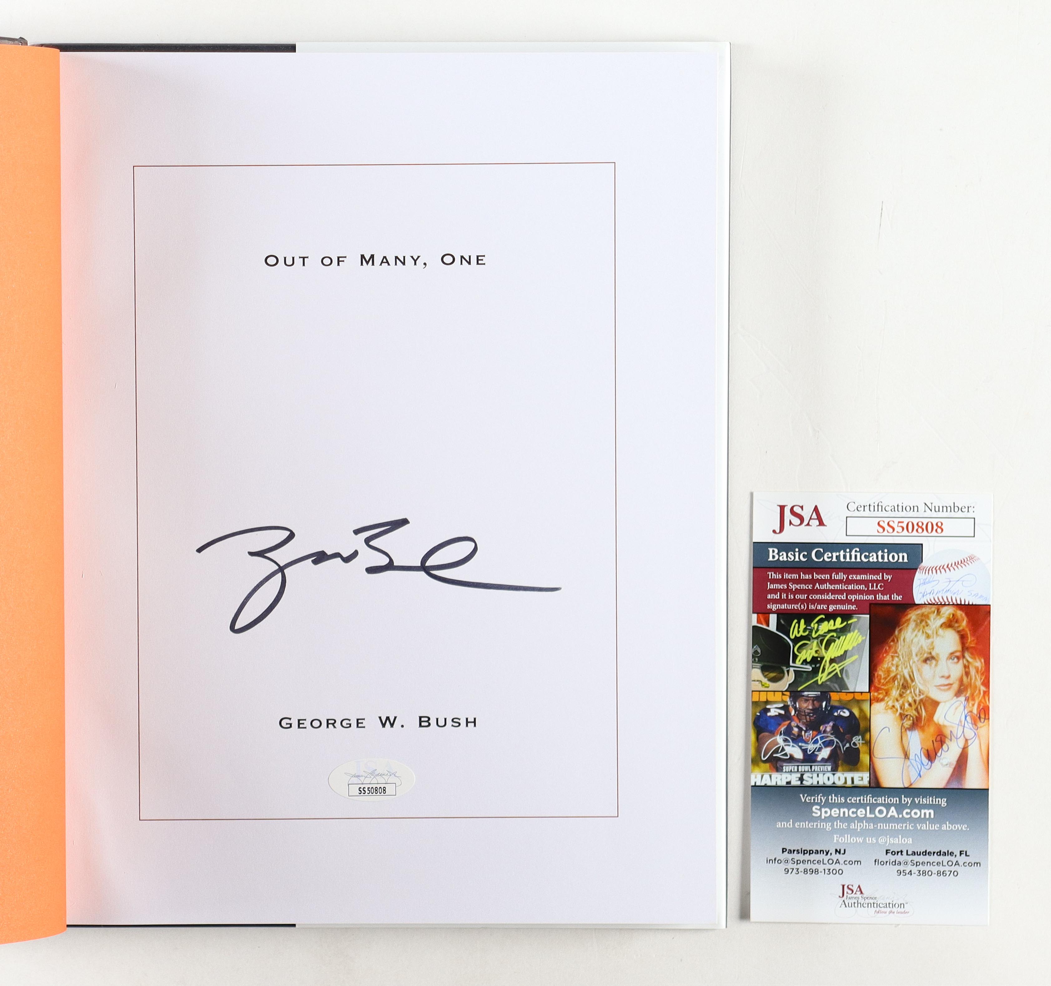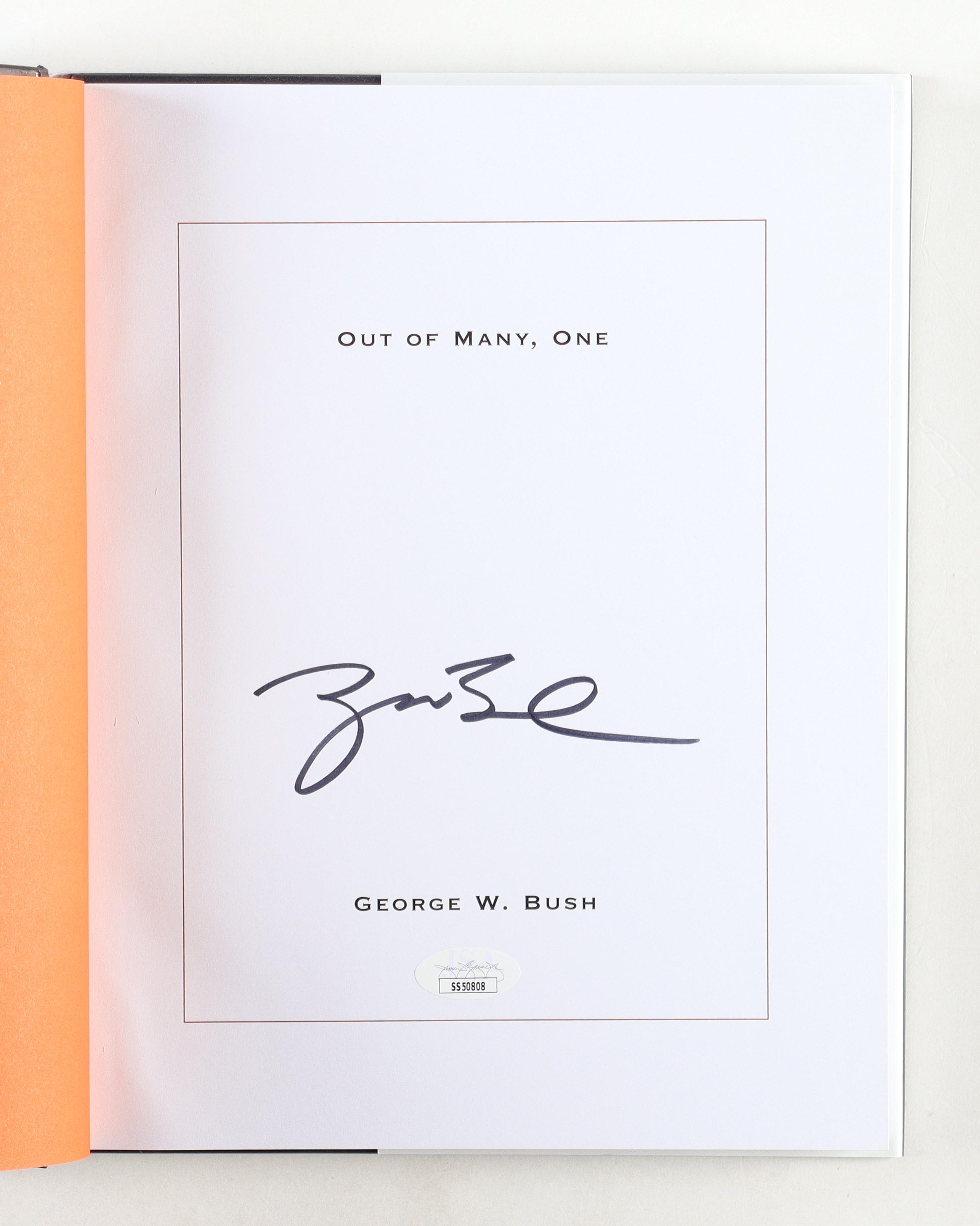 "Out Of Many, One" paperback book has been hand-signed on the inside title page by George W. Bush. Please note, there is some creasing on the corners of the cover jacket.