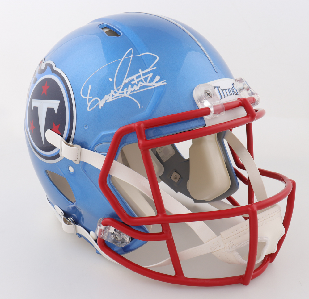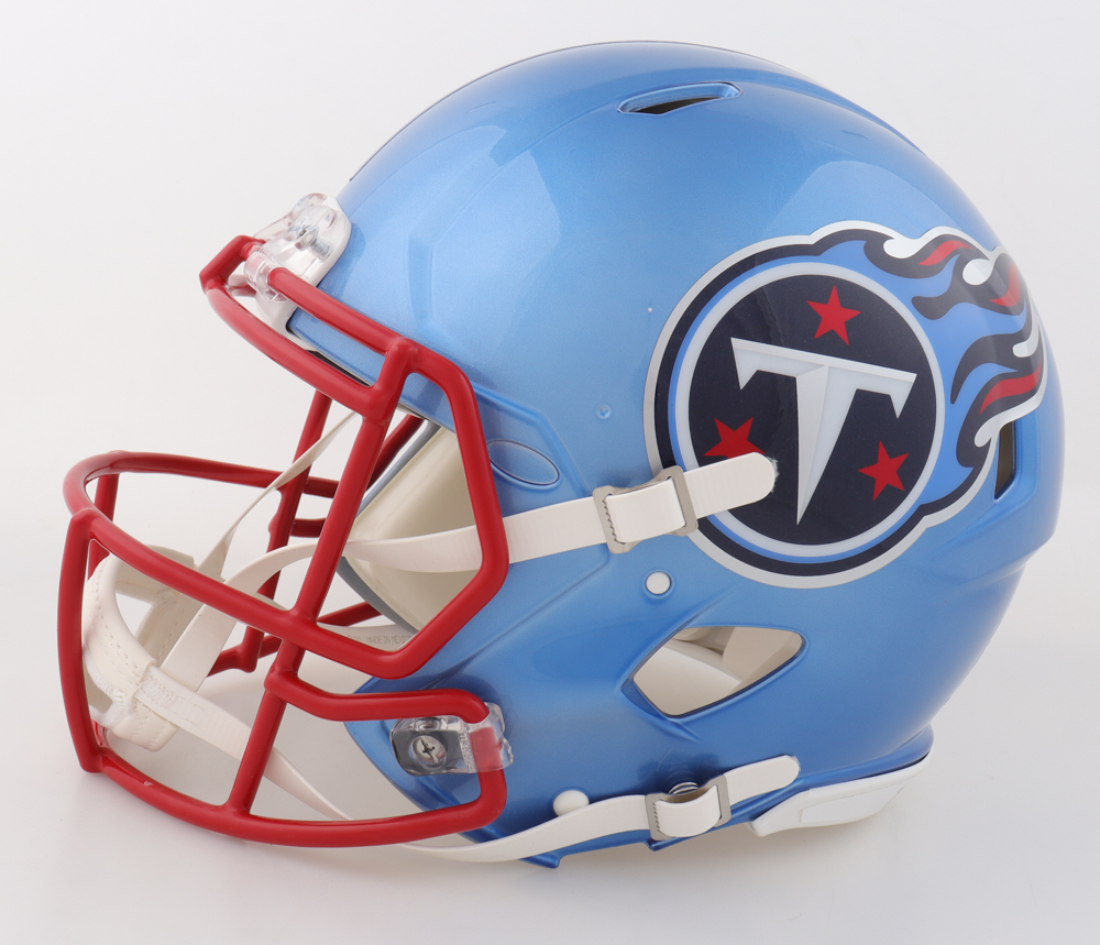 Riddell Tennessee Titans full-size authentic on-field Flash Alternate speed helmet has been hand-signed by Derrick Henry.