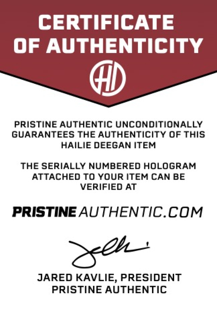The piece includes an official Pristine Authentic hologram matches with a Hailie Deegan exclusive COA for authenticity purposes.