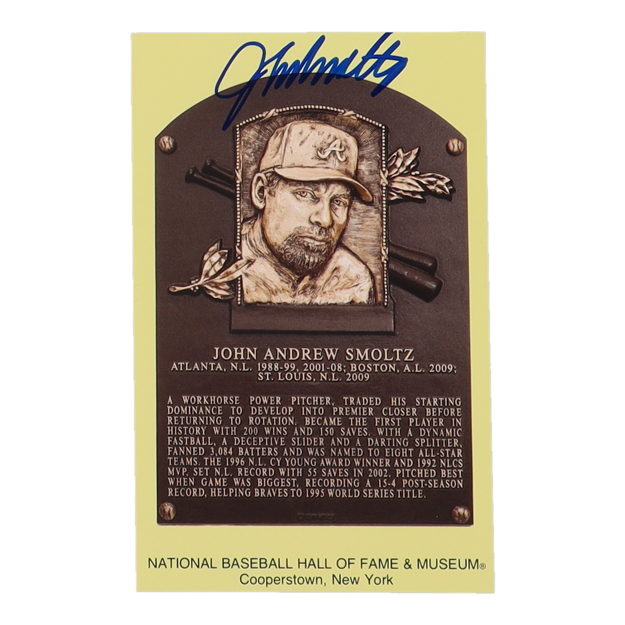 John Smoltz Signed Hall of Fame Plaque Postcard (PSA)