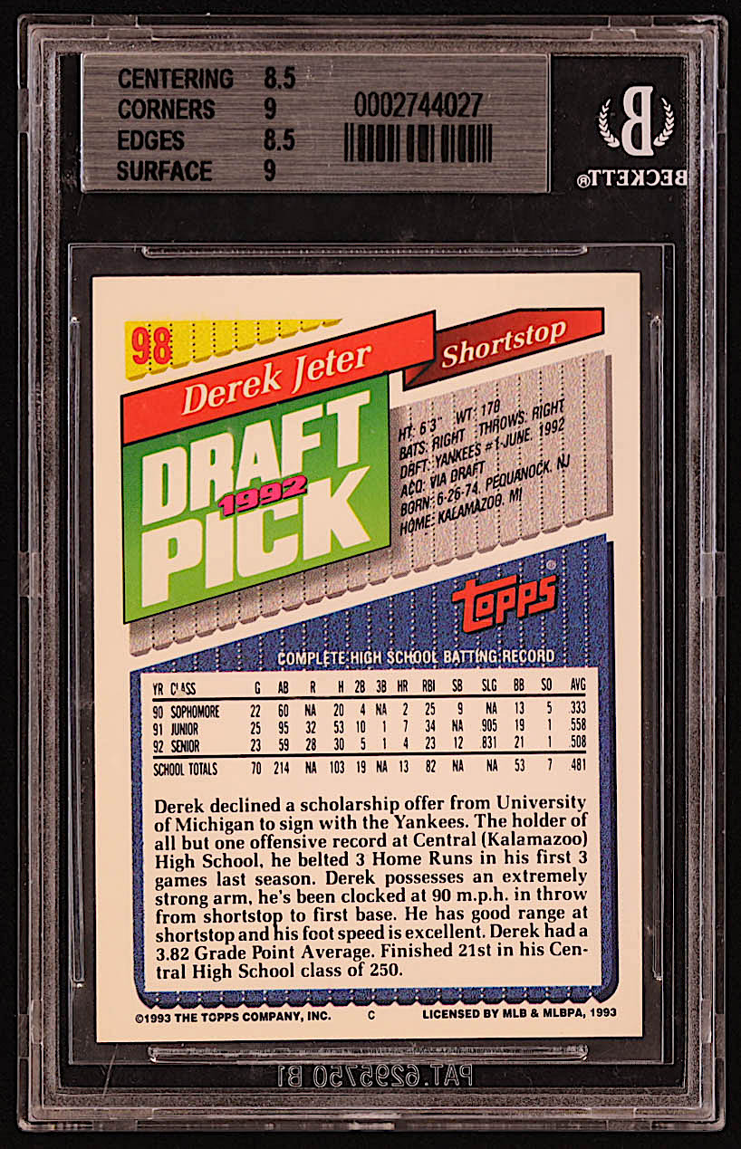 Derek Jeter 1993 Topps #98 RC (BGS 8.5)