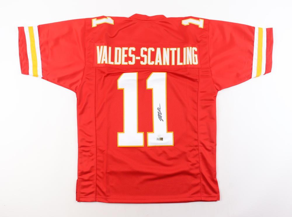 Custom jersey with everything sewn on, size XL. Hand-signed by Marquez Valdes-Scantling.