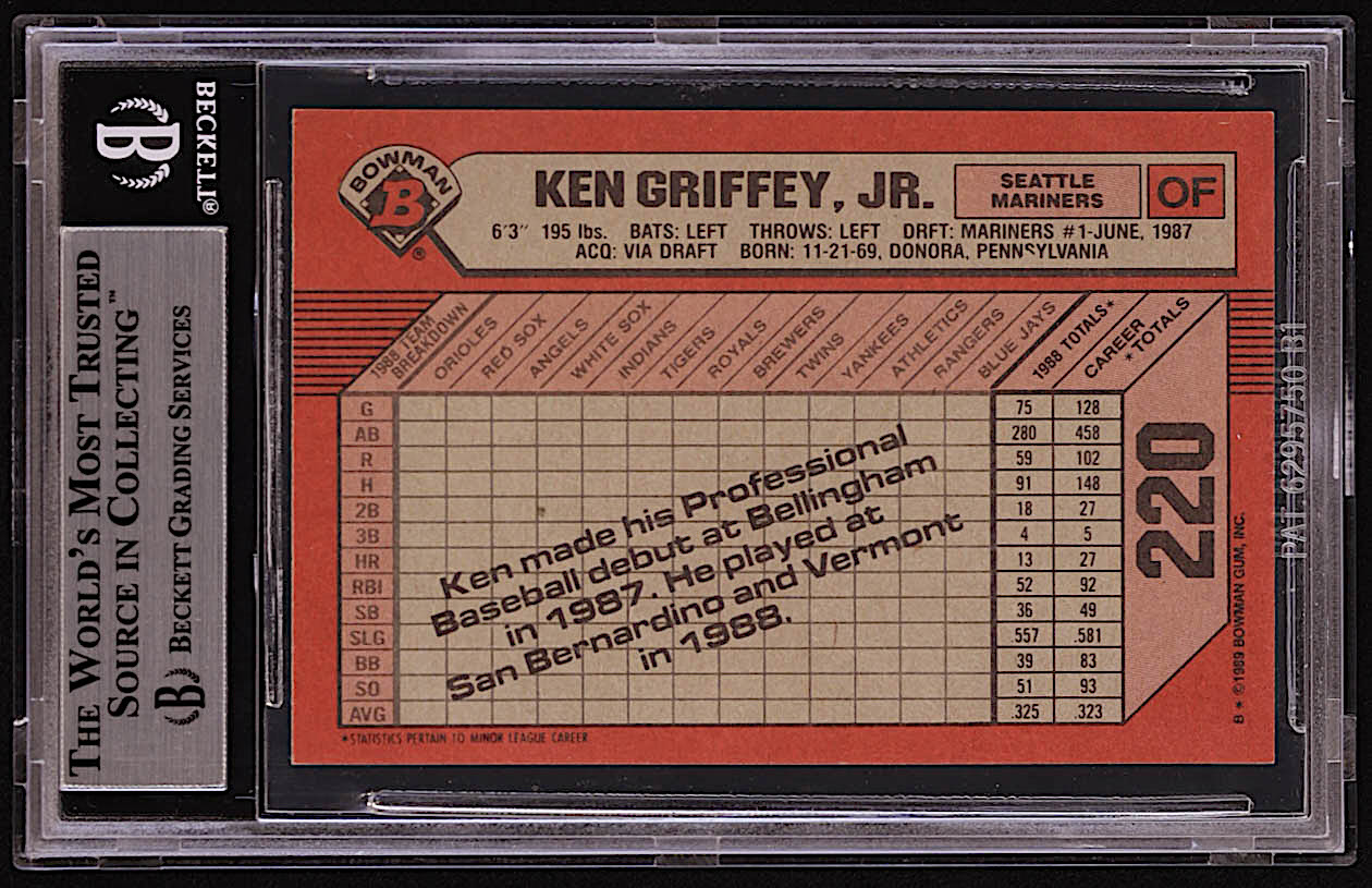 Ken Griffey Jr. Signed 1989 Bowman #220 RC (BGS | Auto 10)