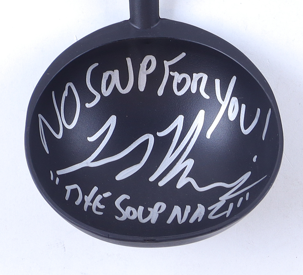 Soup ladle has been hand-signed and inscribed by Larry Thomas (Yev Kassem / The Soup Nazi).