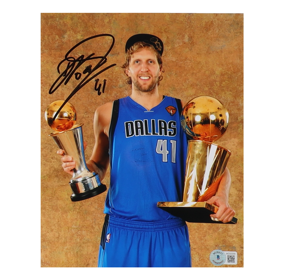 Photo measures 8" x 10" in size and has been hand-signed by Dirk Nowitzki (Dallas Mavericks, HOF).