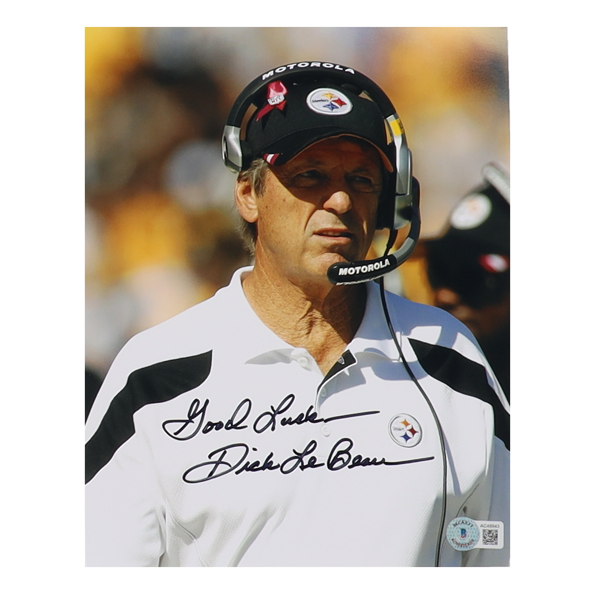 Photo measures 8" x 10" in size and has been hand-signed and inscribed by Dick LeBeau (Pittsburgh Steelers, HOF).