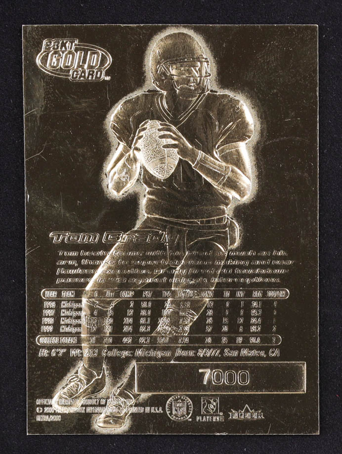 Tom Brady 2000 Fleer Ultra 23Kt Gold Blue Metallic Signature Series RC