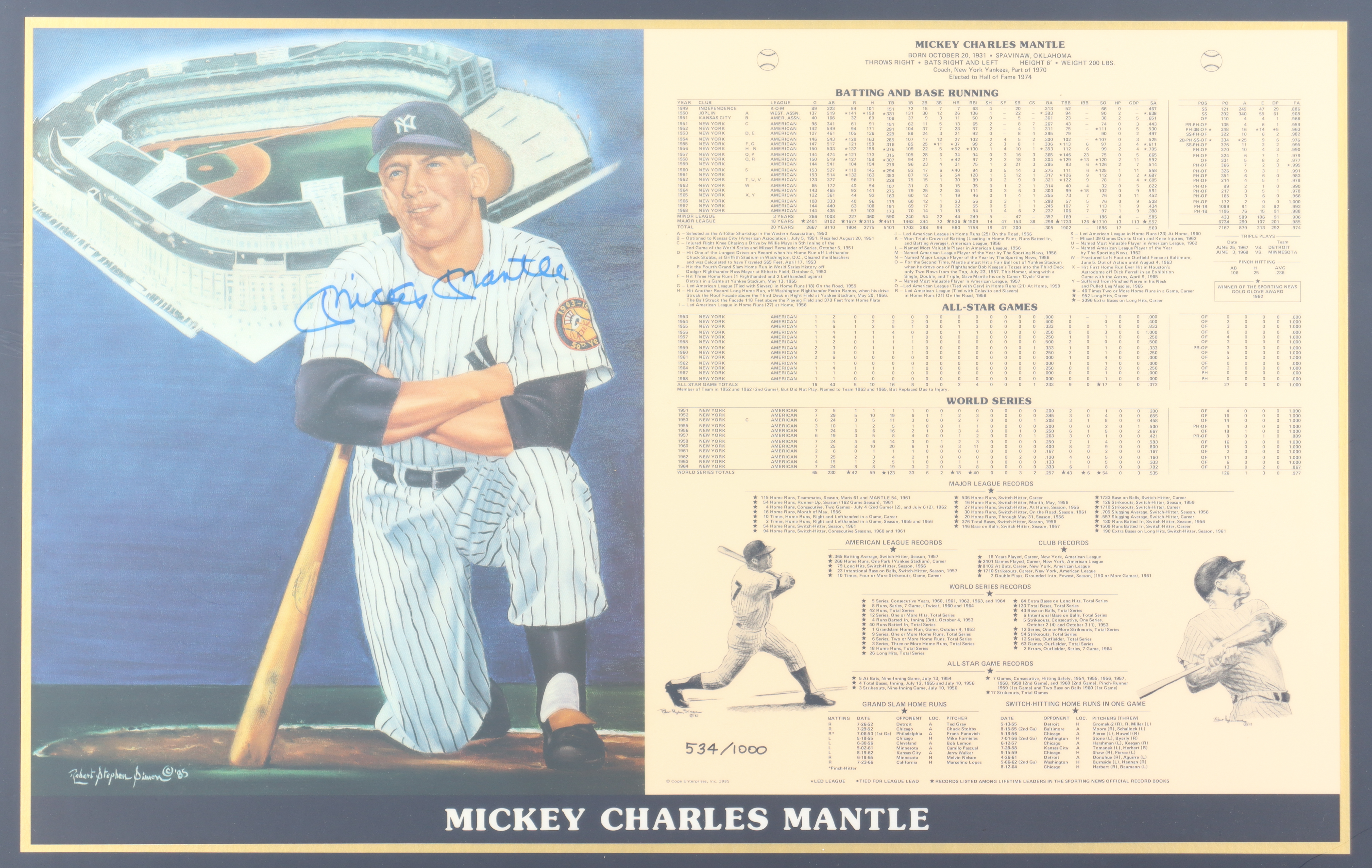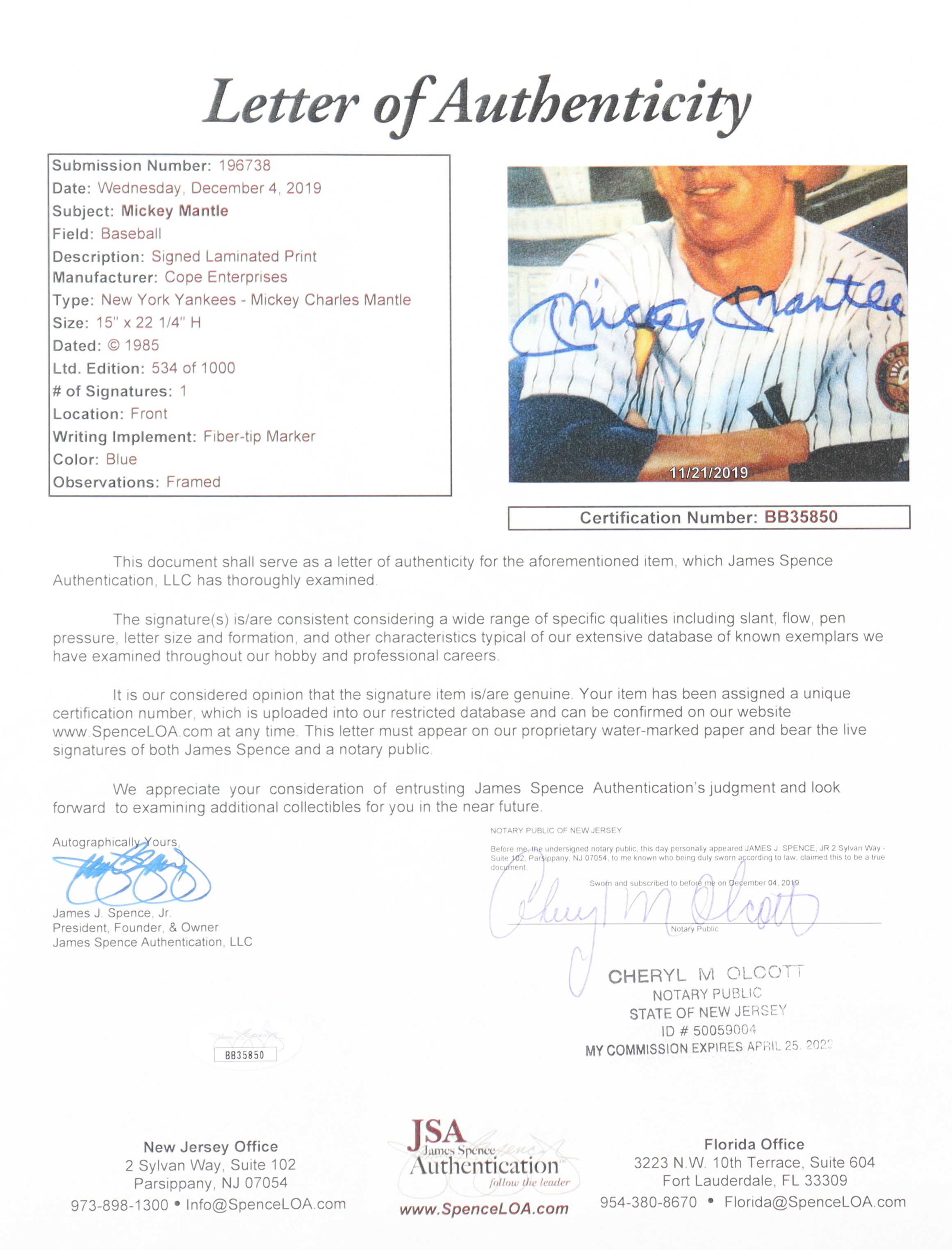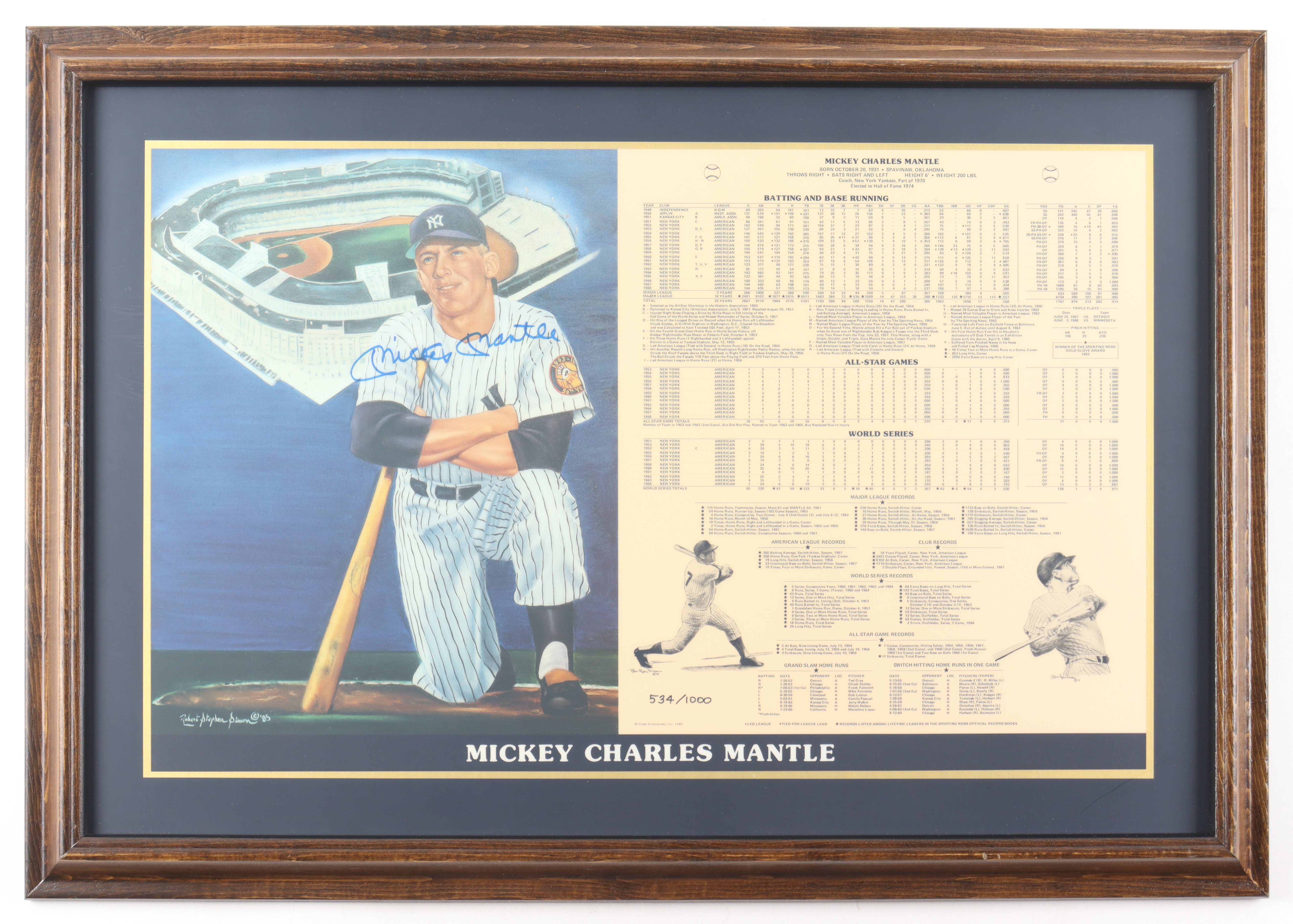 Mickey Mantle Signed Yankees LE Custom Framed Laminated Print Display #534/1000 (JSA)