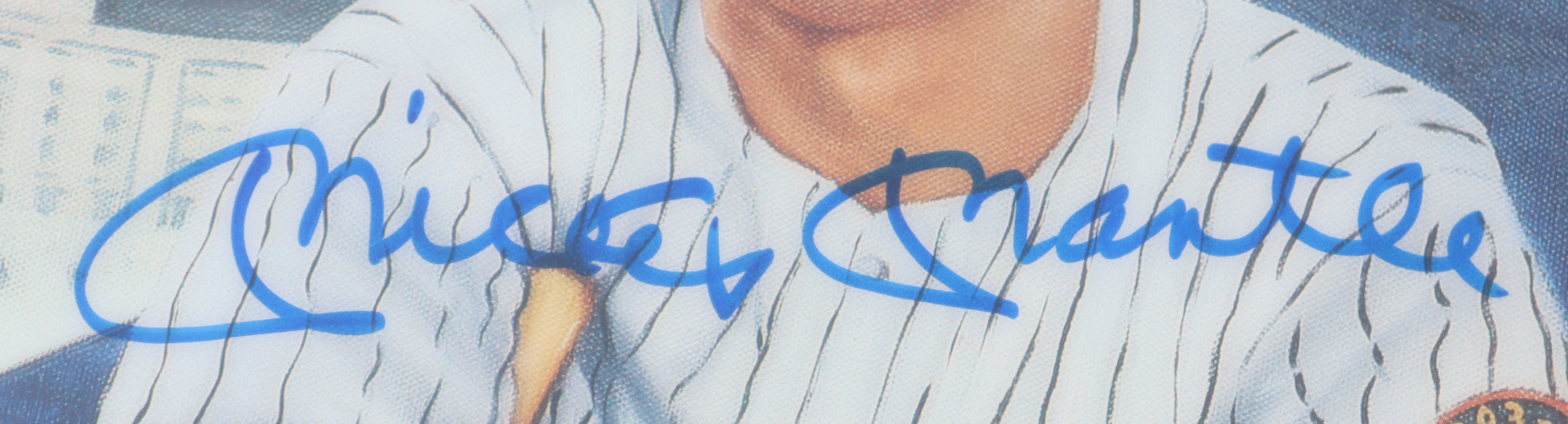 Custom frame measures 18" x 25.5" in size and features a laminated print that has been hand-signed by Yankees icon, Mickey Mantle!
