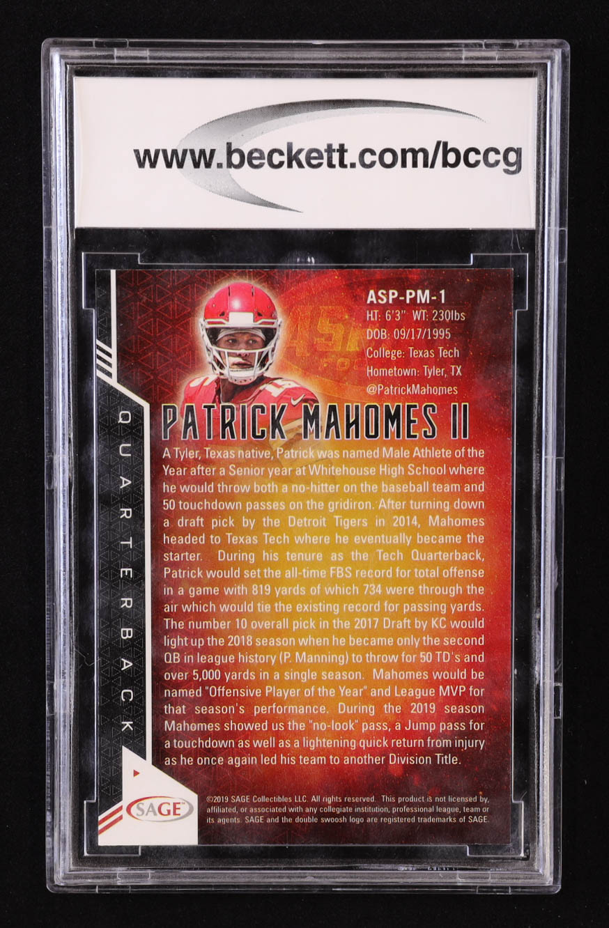 Patrick Mahomes II 2019 SAGE Aspire #ASPPM1 (BCCG 10)