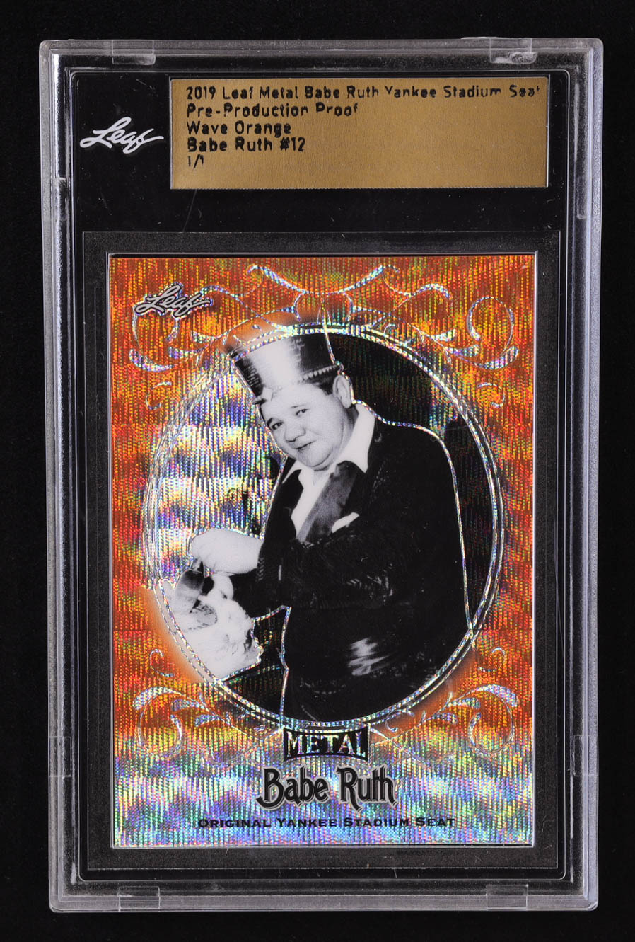 Babe Ruth 2019 Leaf Metal Babe Ruth Yankee Stadium Seat Pre-Production Proof Wave Orange #12 #1/1 (Leaf)