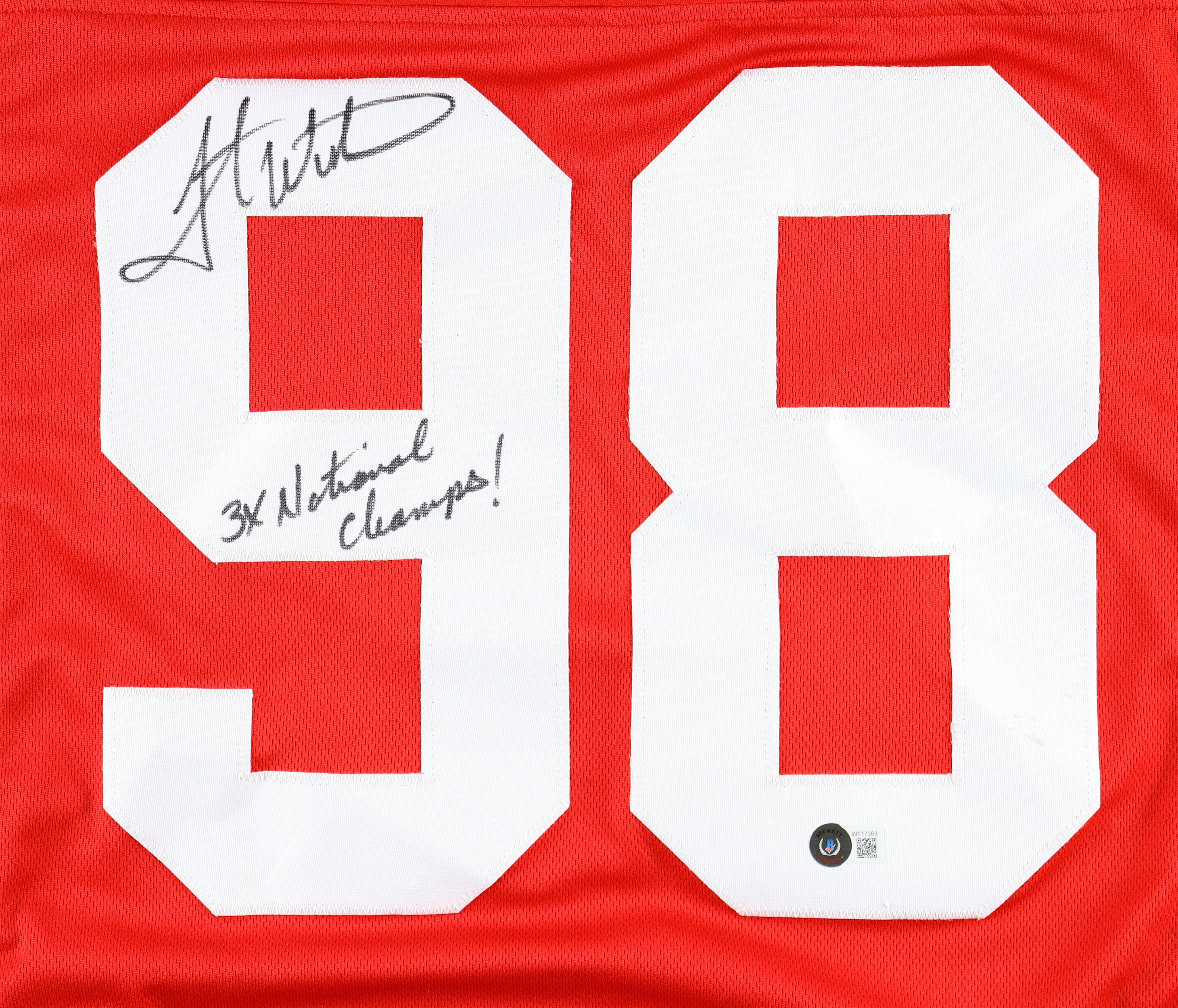 Grant Wistrom Signed Jersey Inscribed "3X National Champs!" (Beckett)