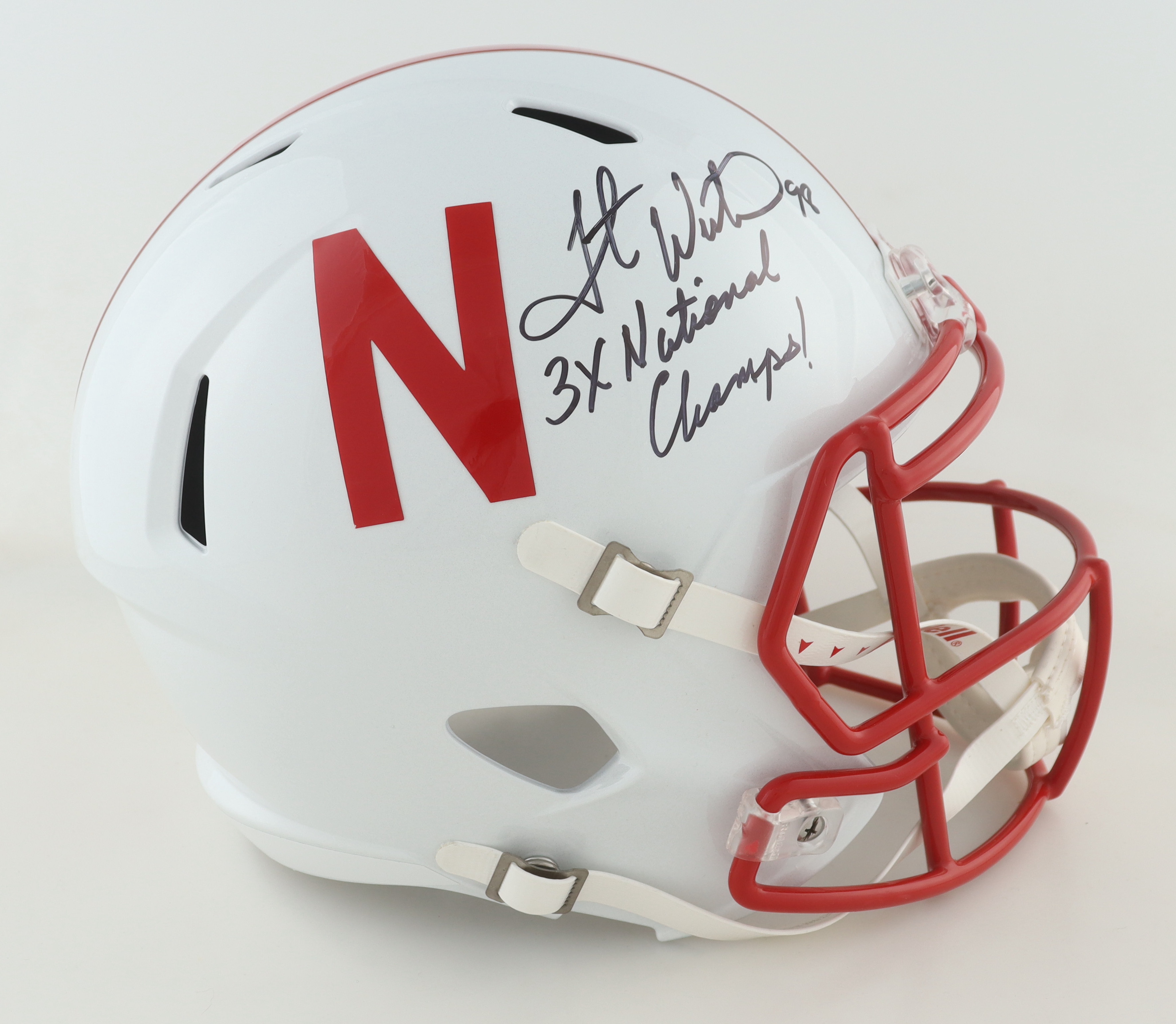 Grant Wistrom Signed Nebraska Cornhuskers Full-Size Speed Helmet Inscribed "3x National Champs!" (Beckett)