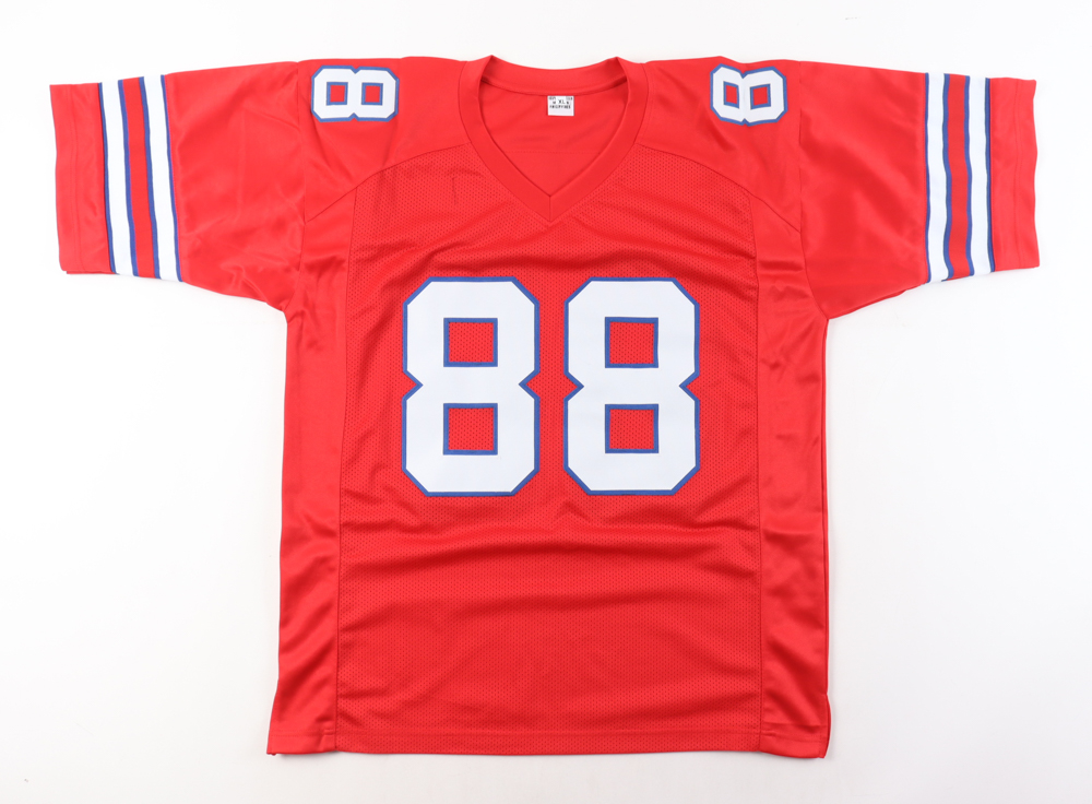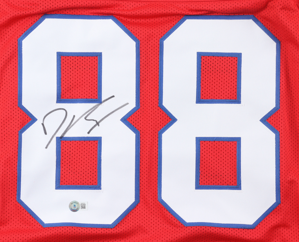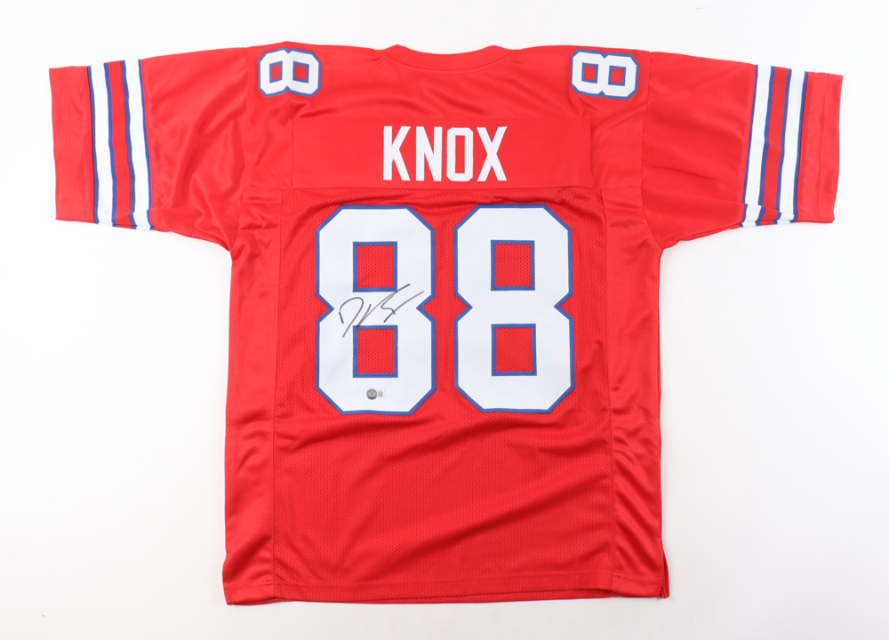 Custom football jersey. Everything sewn on, size XL. Hand-signed by Dawson Knox.