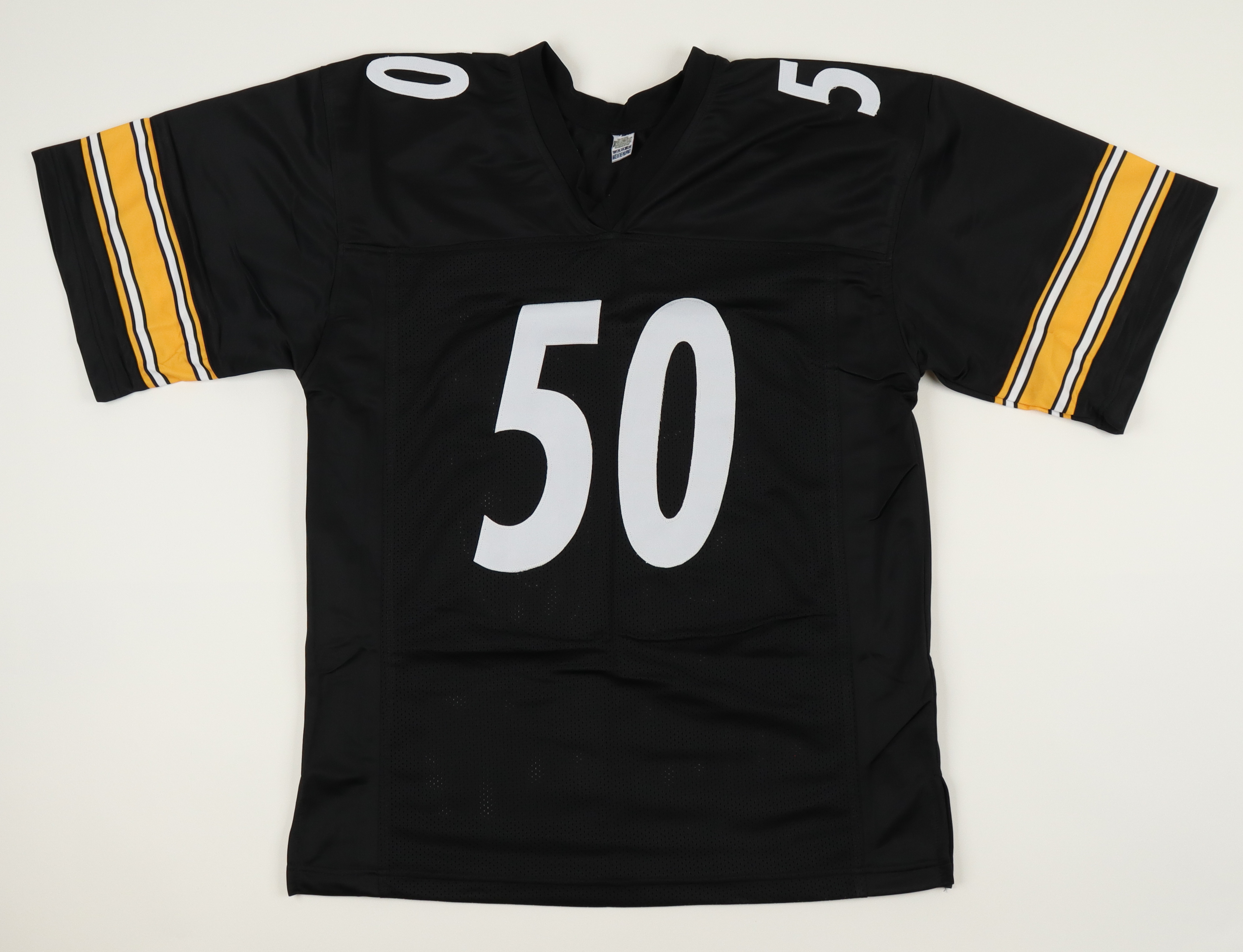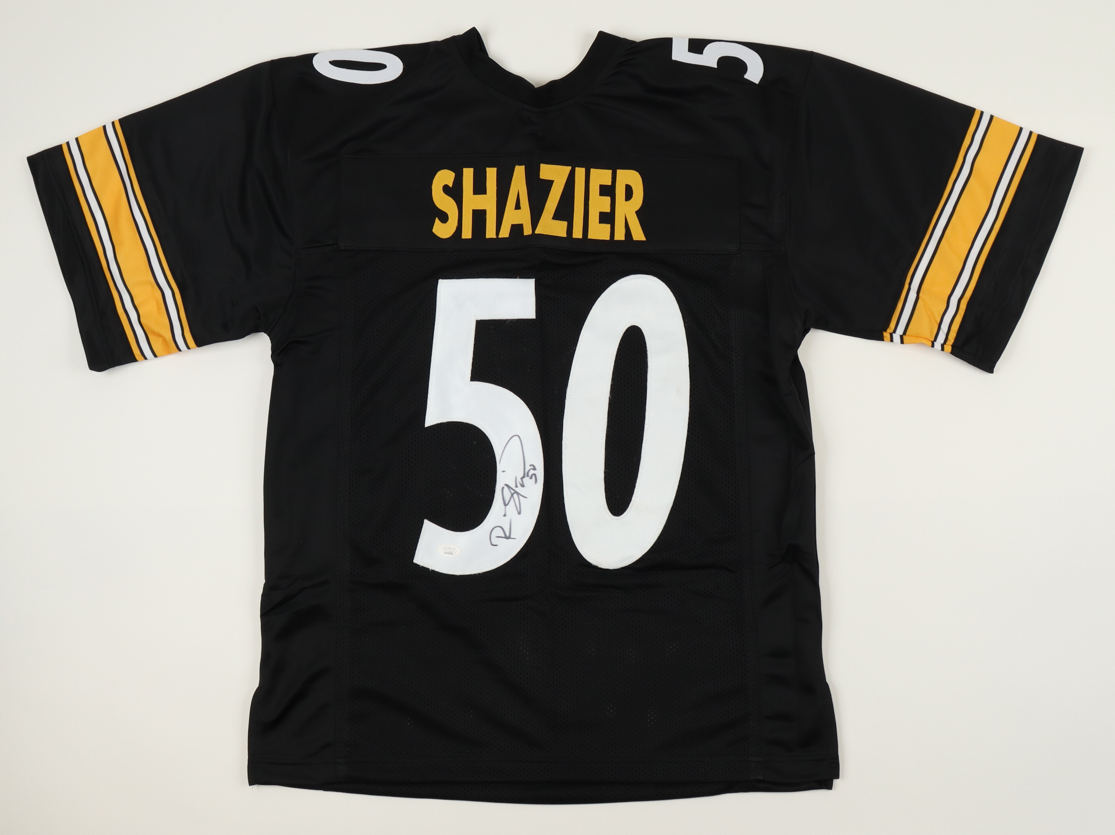 Custom jersey. Everything is sewn on, size XL. Has been hand-signed by Ryan Shazier.