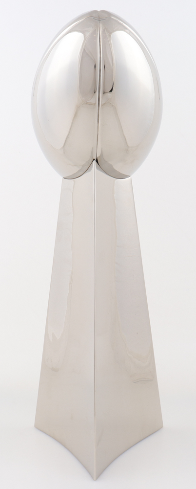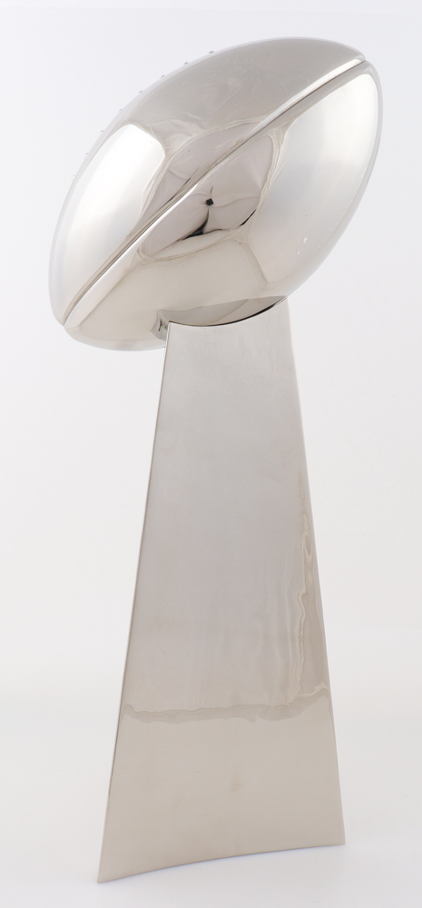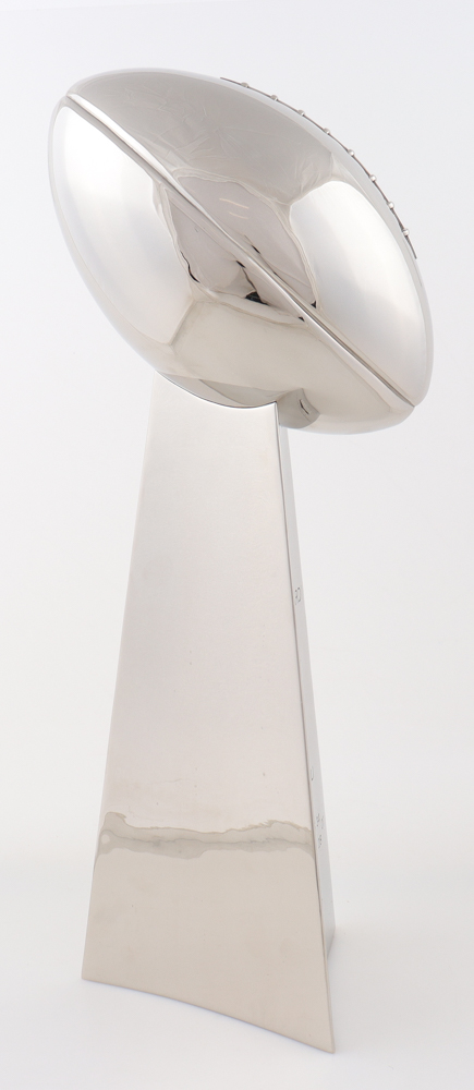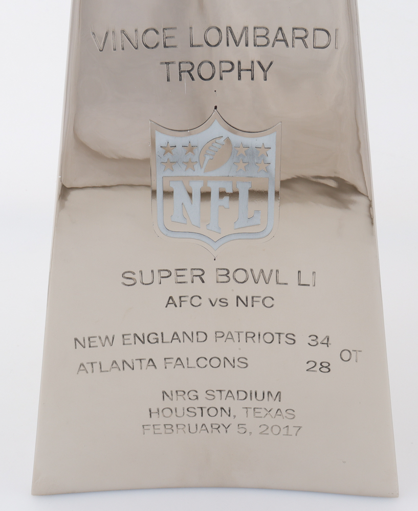 Trophy measures approximately 22" in height and features the Super Bowl LI featuring the New England Patriots and the Atlanta Falcons. Please note the trophy is not signed.