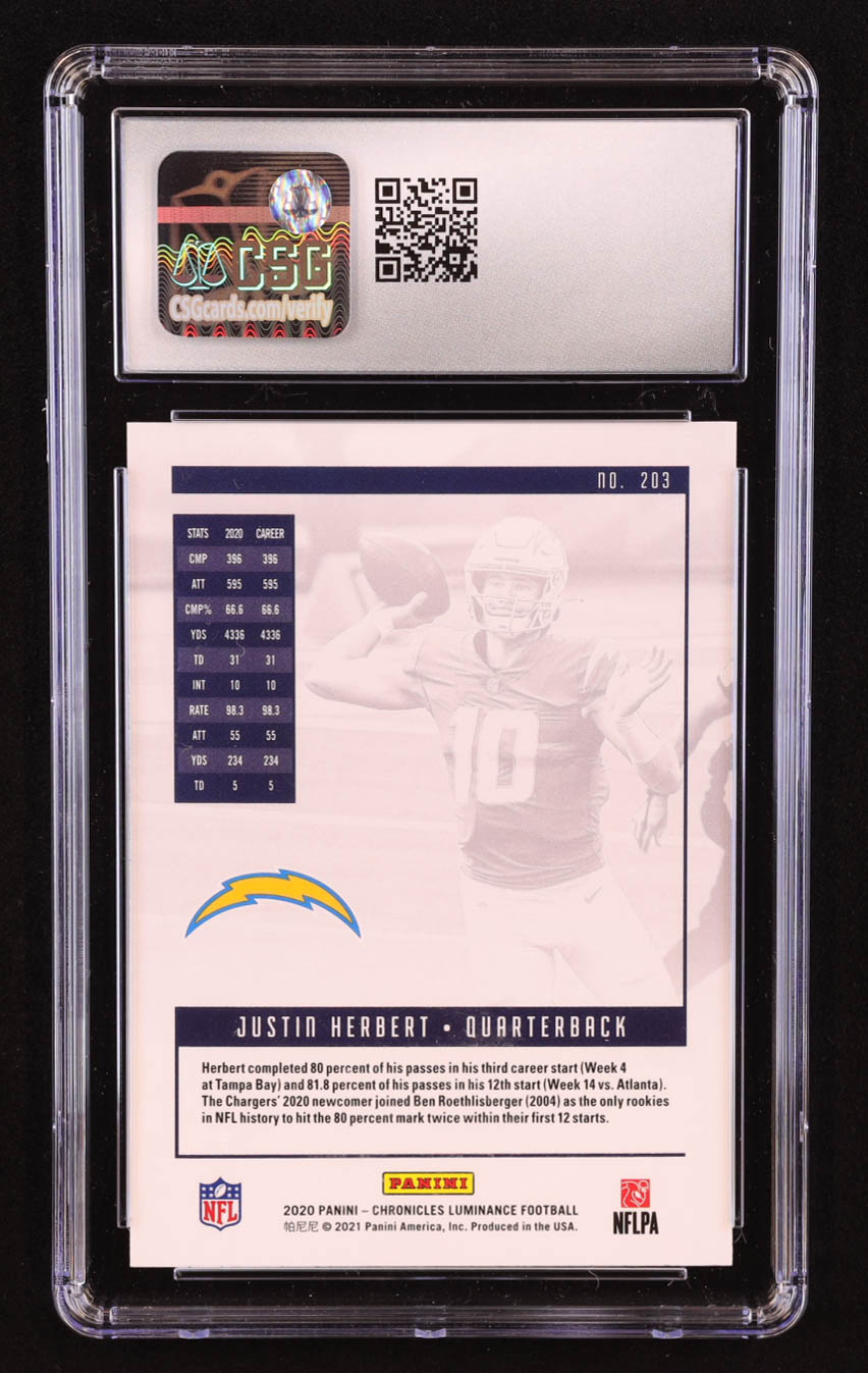 Justin Herbert 2020 Panini Luminance #203 Chronicles RC (CSG 10)