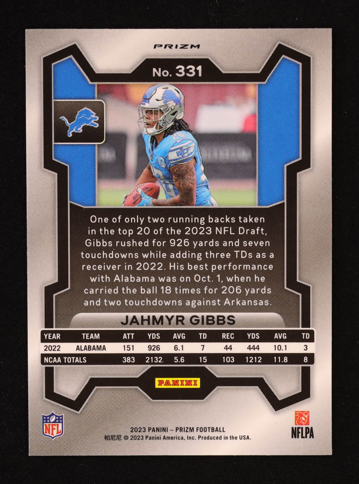 Jahmyr Gibbs 2023 Panini Prizm Prizms Disco #331 RC