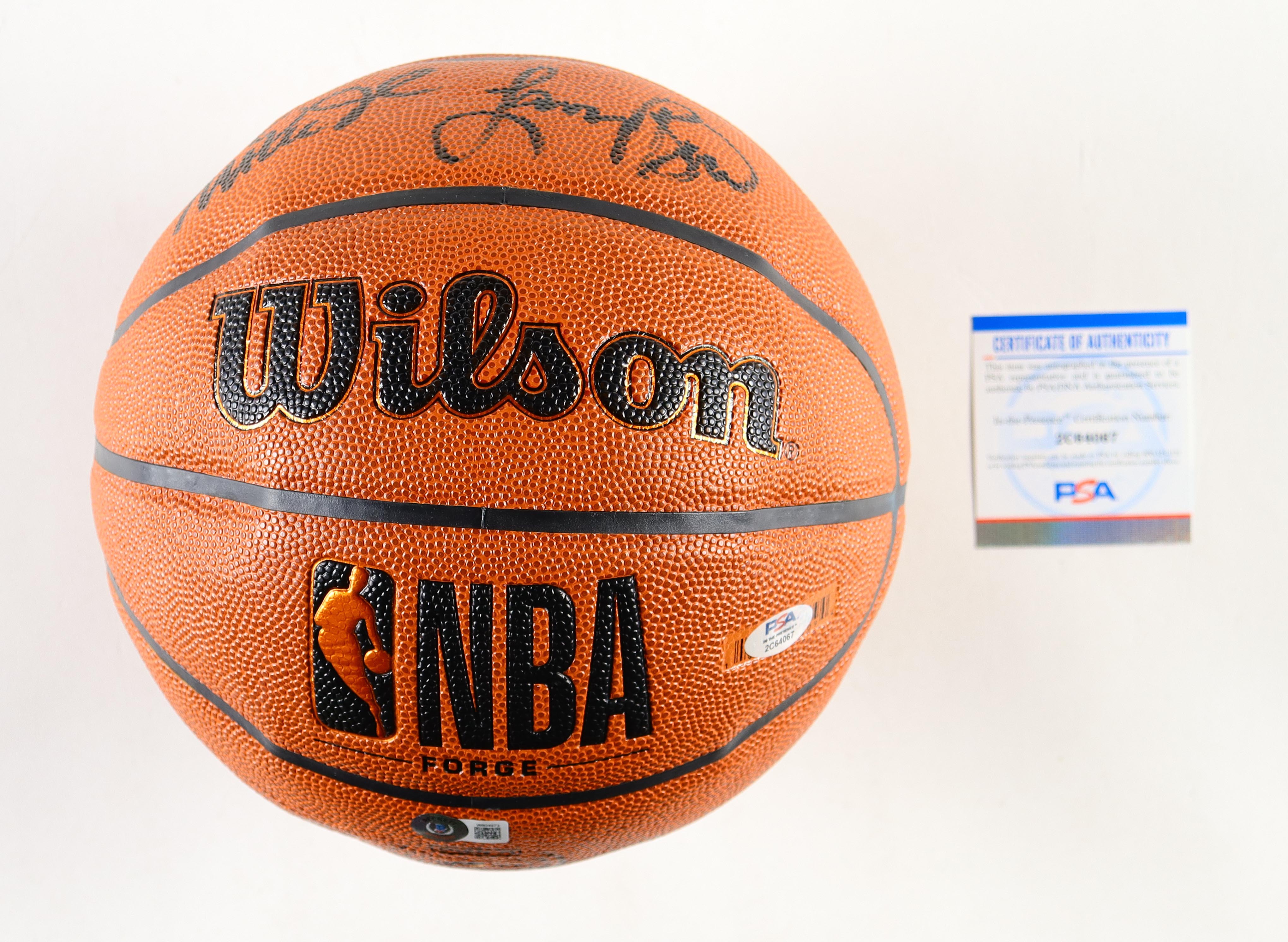 Magic Johnson & Larry Bird Signed Wilson Basketball with Display Case (Beckett & PSA)