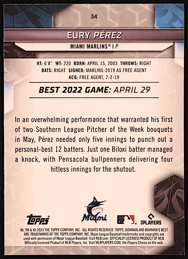 Eury Perez 2023 Bowman's Best Wave Refractors #34 RC
