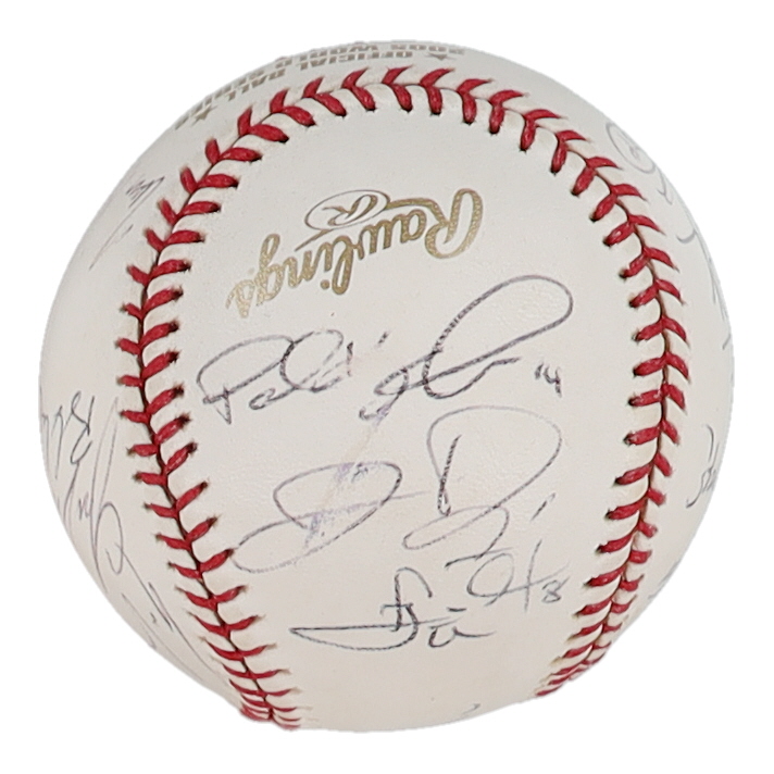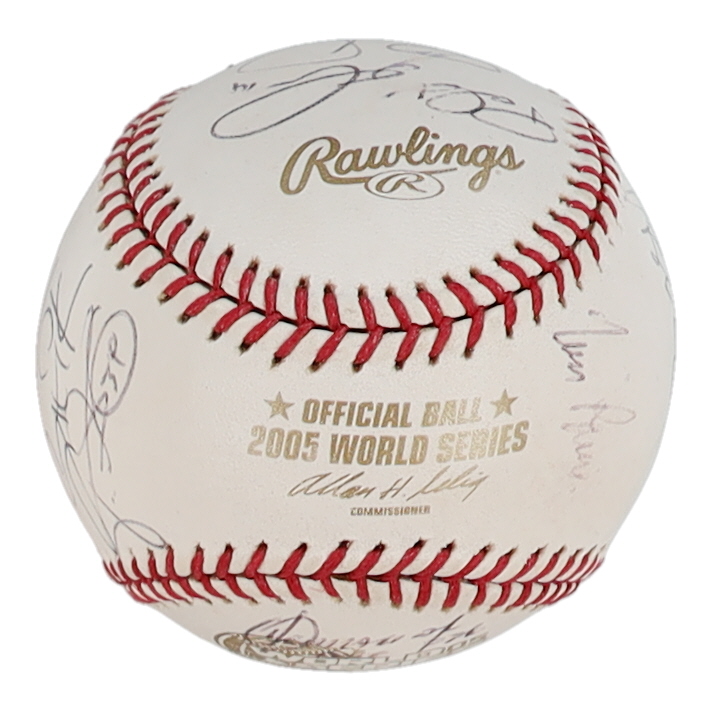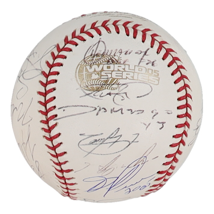 Rawlings 2005 World Series Baseball. Hand-signed by (19) members of the 2005 Chicago White Sox including Tim Raines, Juan Uribe, Jermaine Dye, José Contreras, Orlando Hernandez, Damaso Marte, Carl Everett, Paul Konerko, Freddy Garcia, Scott Podsednik and (9) others.