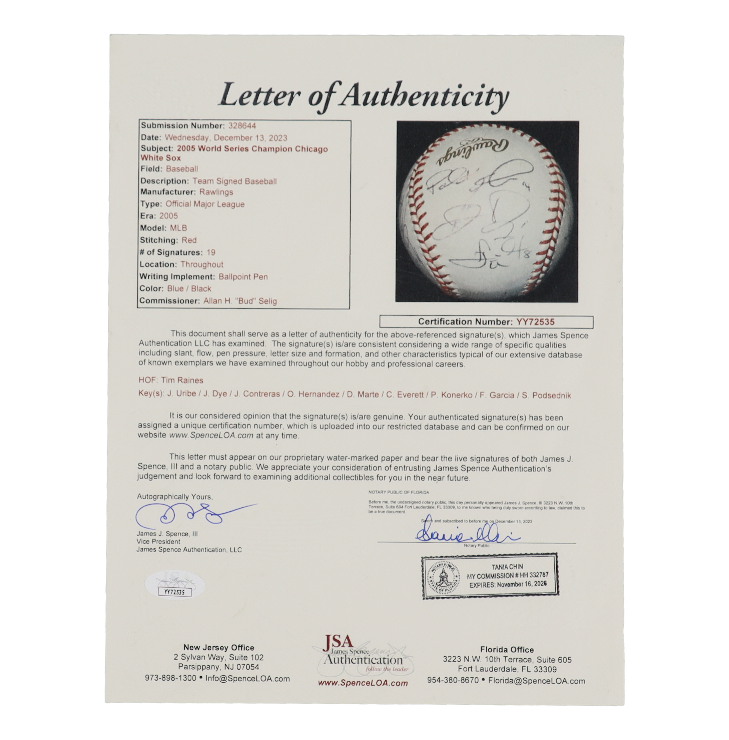 2005 White Sox 2005 World Series Baseball Team-Signed by (19) with Tim Raines, Juan Uribe, Jermaine Dye, José Contreras (JSA)