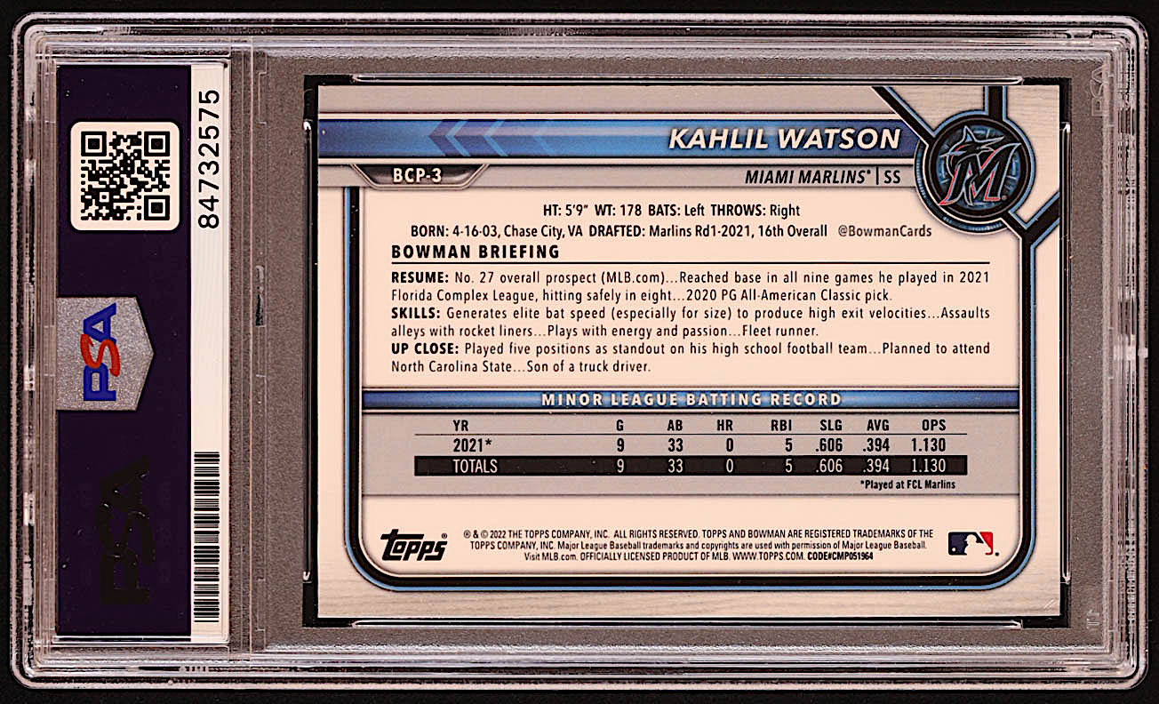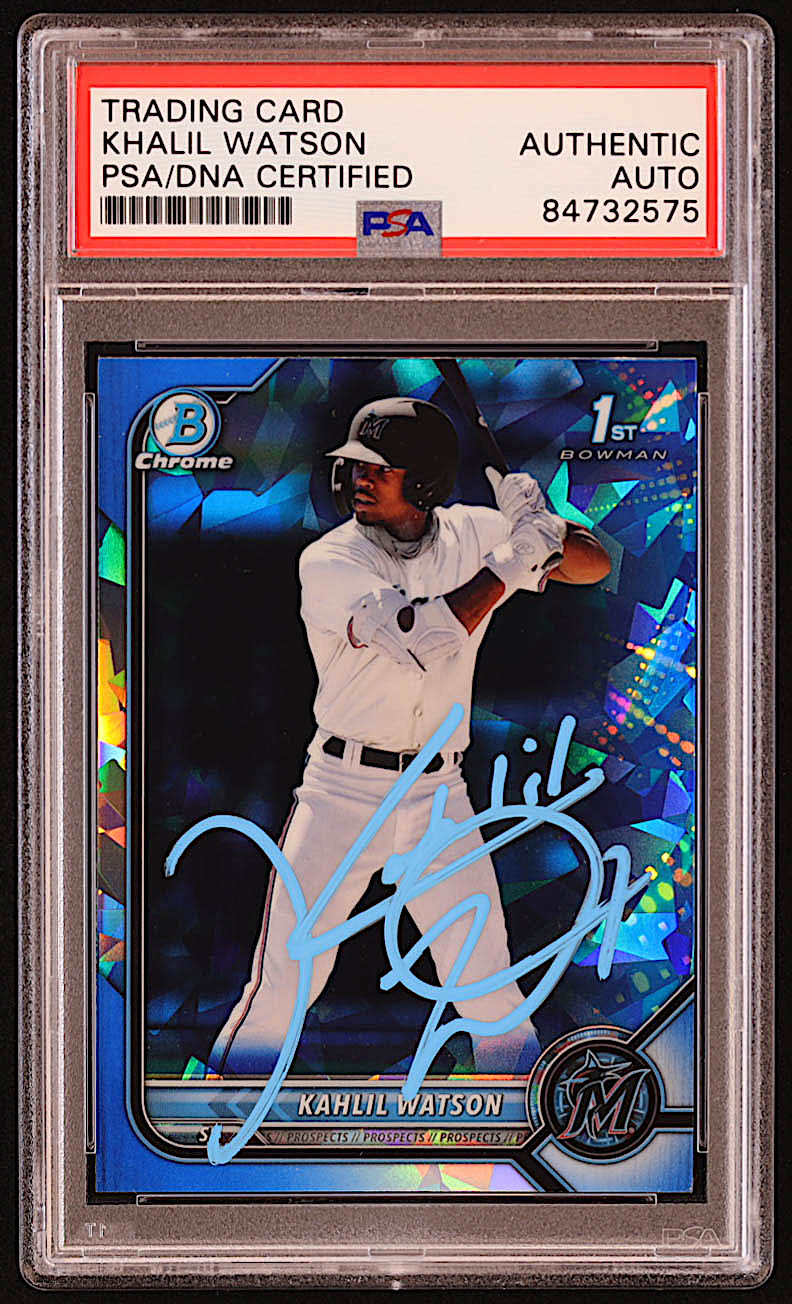 Kahlil Watson Signed 2022 Bowman Chrome Sapphire Prospects #BCP3 RC (PSA)