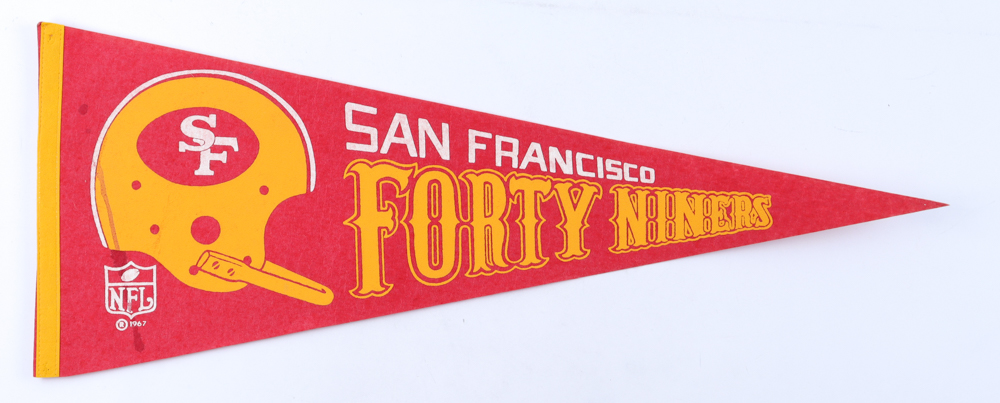1976 vintage San Francisco 49ers Felt Pennant measures approximately 30" in length. Please see photo for details on flag wear and tear.