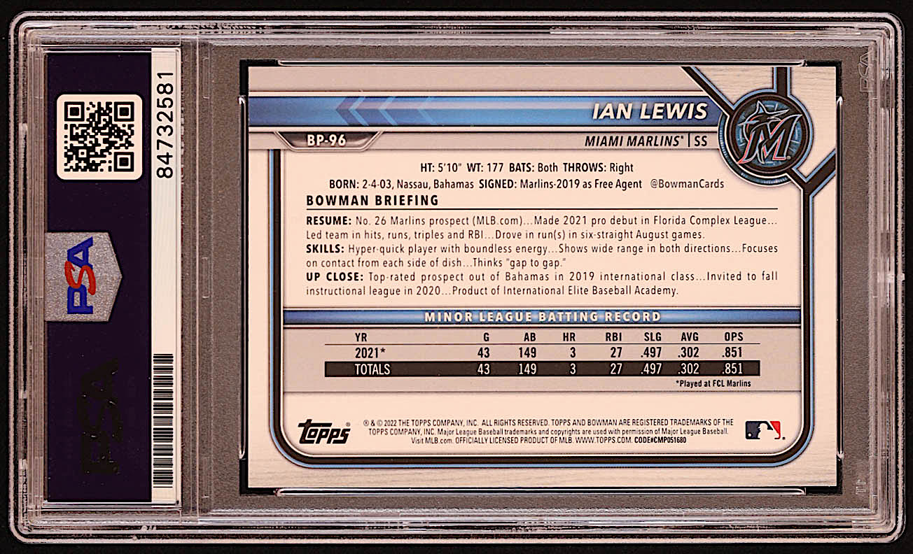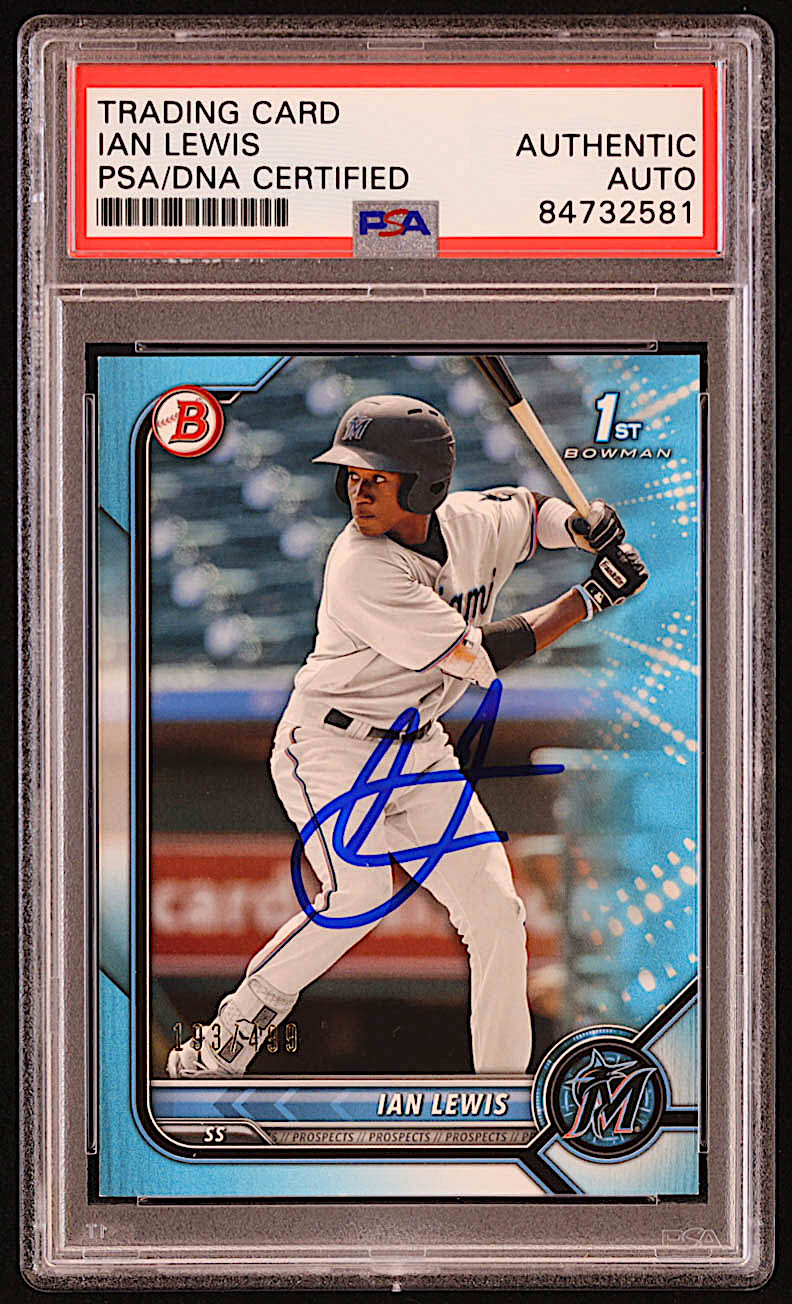 Ian Lewis Signed 2022 Bowman Prospects Sky Blue #BP96 #193/499 RC (PSA)