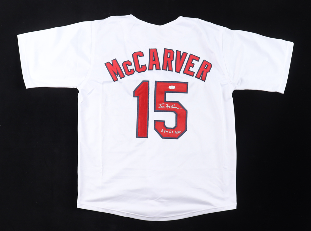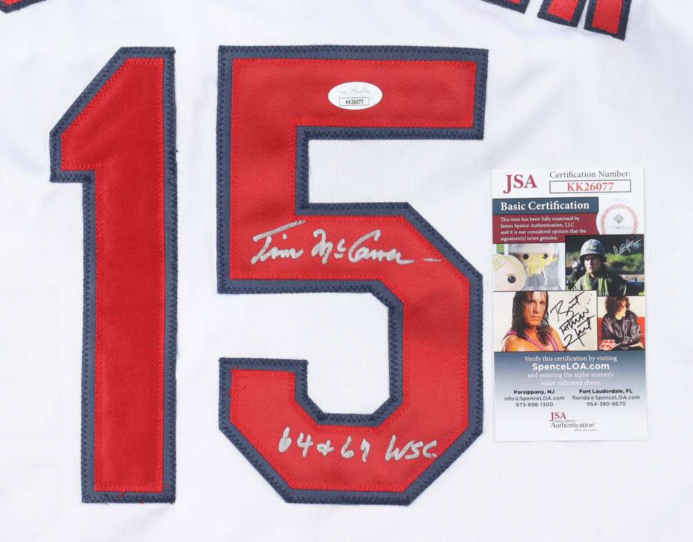 Tim McCarver Signed Jersey Inscribed "64 + 67 WSC" (JSA)