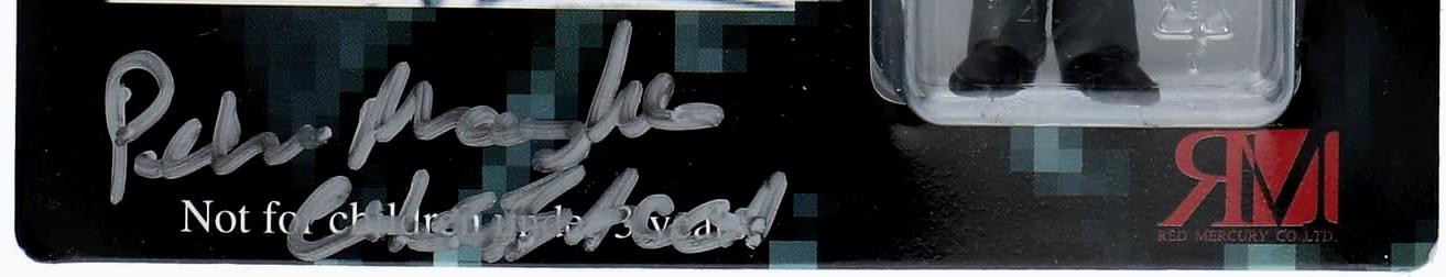 2000 Red Mercury Japan David Prowse Star Wars limited edition action figure. Hand-signed by David Prowse (D. 2020, Darth Vader), Peter Mayhew "Chewbacca" (D. 2019) and Daniel Logan "Boba Fett (Clone Boys)".