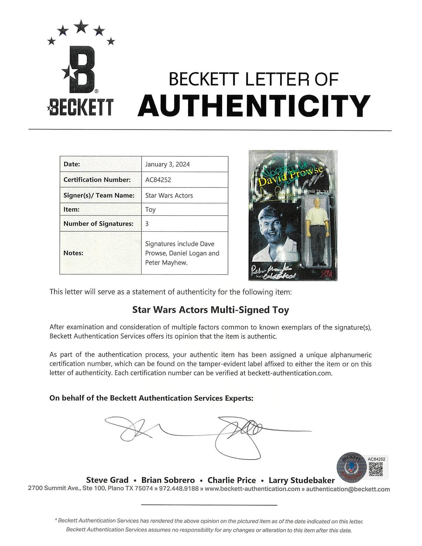 David Prowse, Peter Mayhew & Daniel Logan Signed Star Wars Action Figure Inscribed "Chewbacca" & "Boba Fett (Clone Boys)" (Beckett)