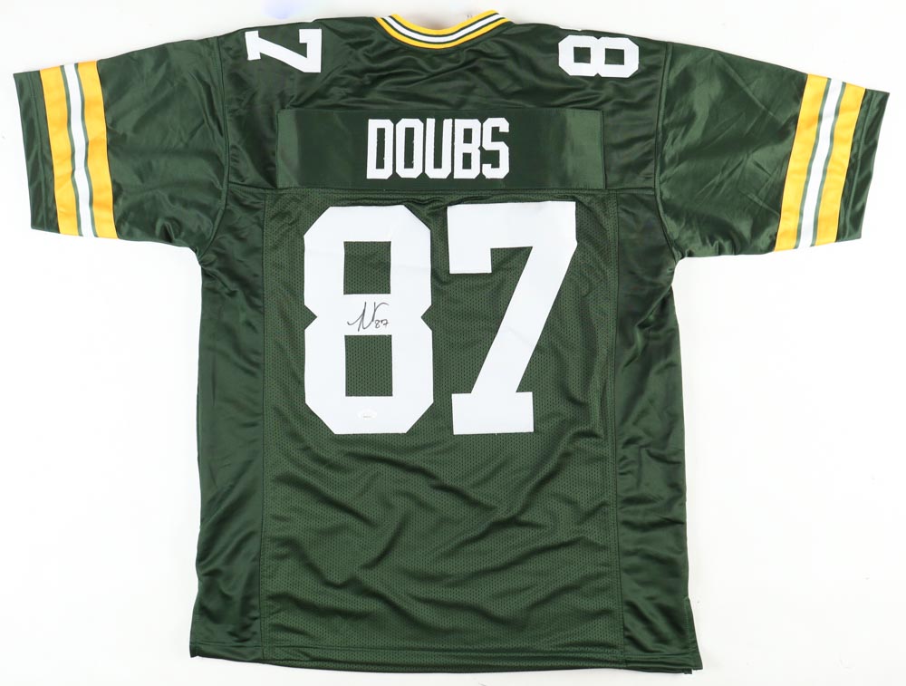 Custom jersey. Everything is sewn on, size XL. Hand-signed by Romeo Doubs.