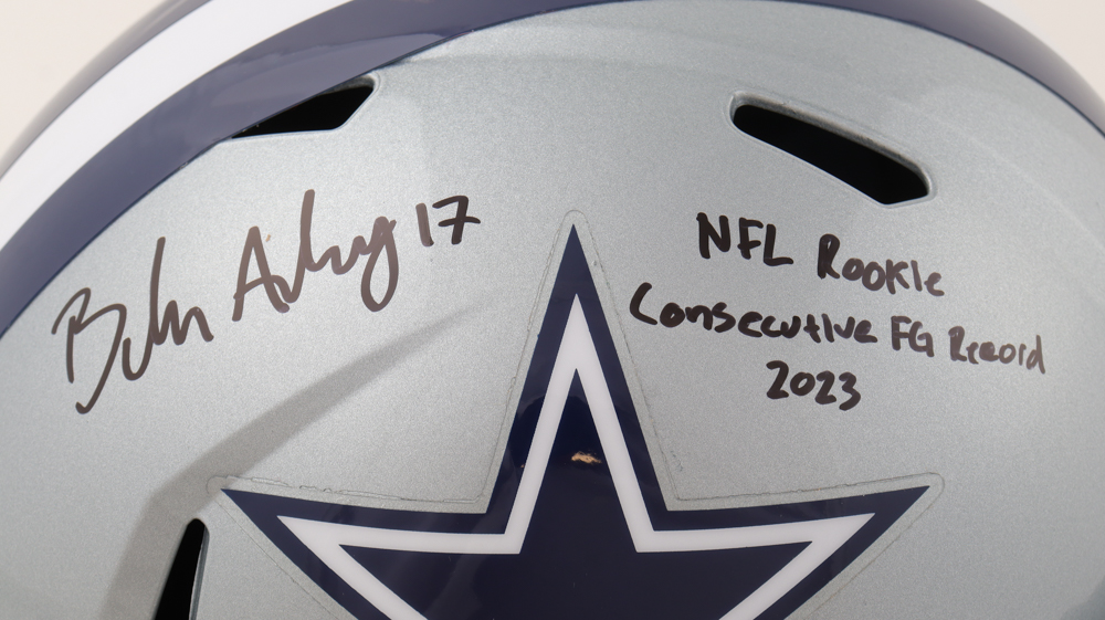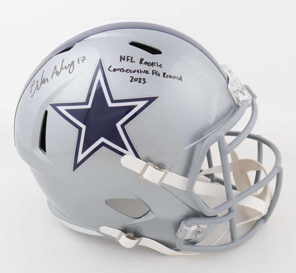 Brandon Aubrey Signed Cowboys Full-Size Speed Helmet Inscribed "NFL Rookie Consecutive FG Record 2023" (Beckett)