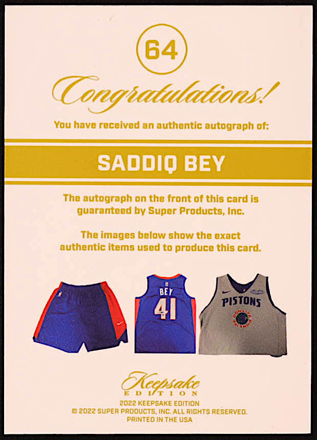 Saddiq Bey 2022 Super Keepsake Edition Patch Autographs #64 #38/50