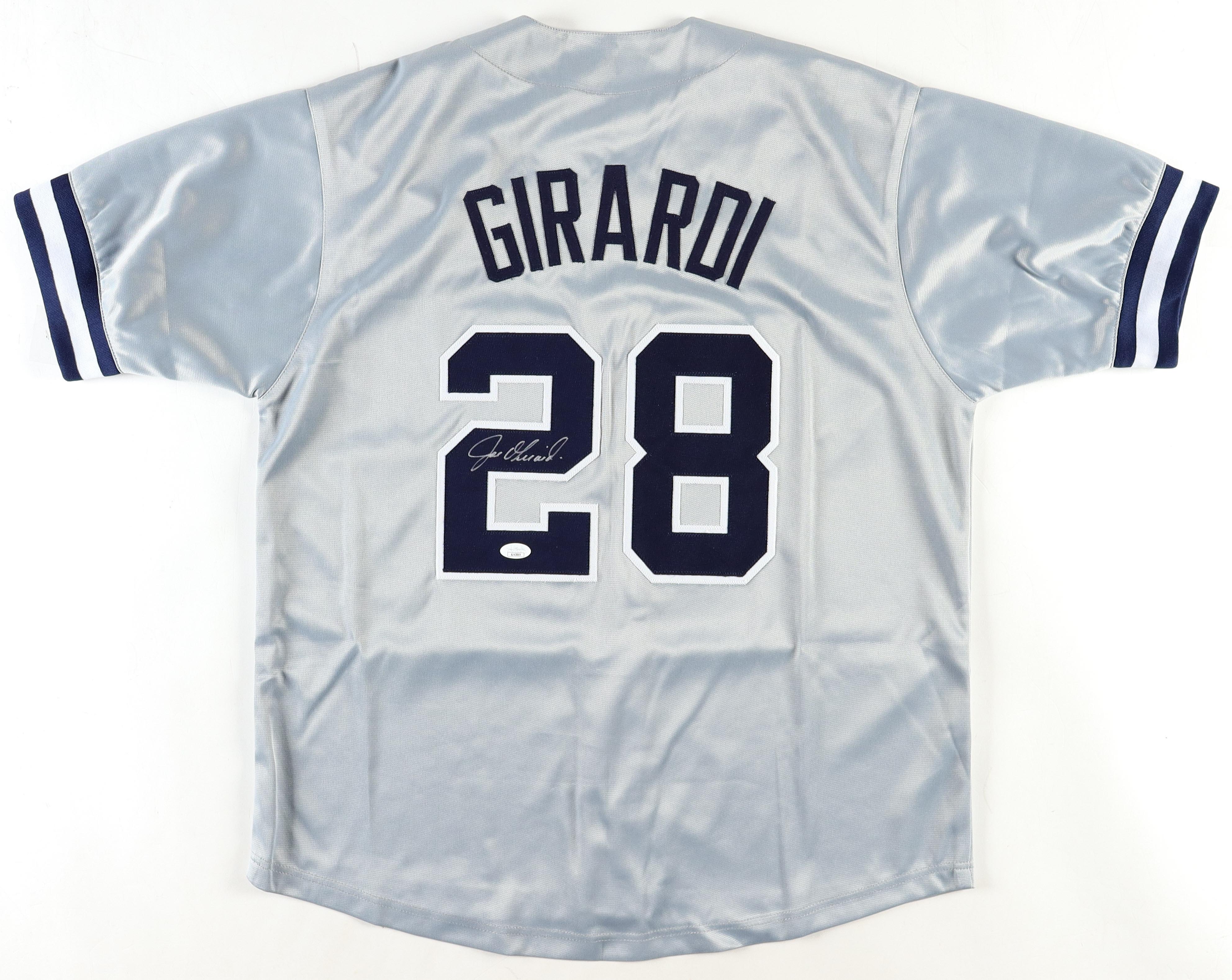 Custom jersey with everything sewn own, size XL. Hand-signed by Joe Girardi.