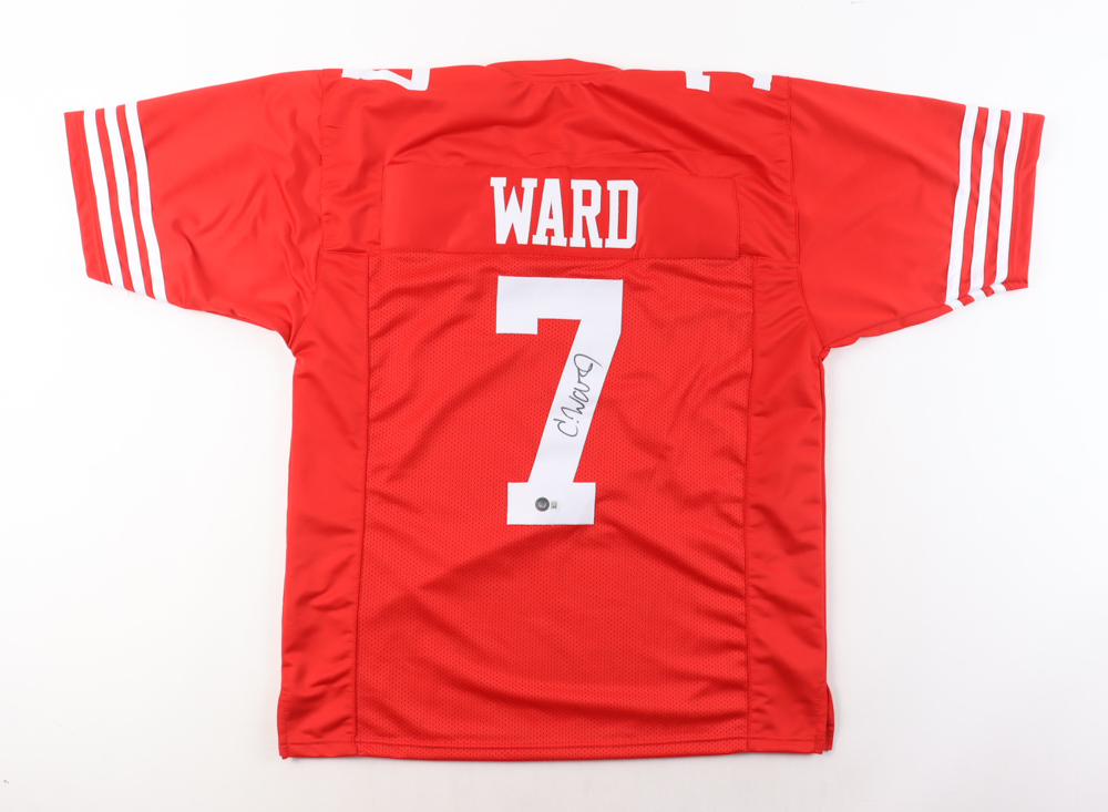 Custom jersey with everything sewn on, size XL. Hand-signed by Charvarius Ward.
