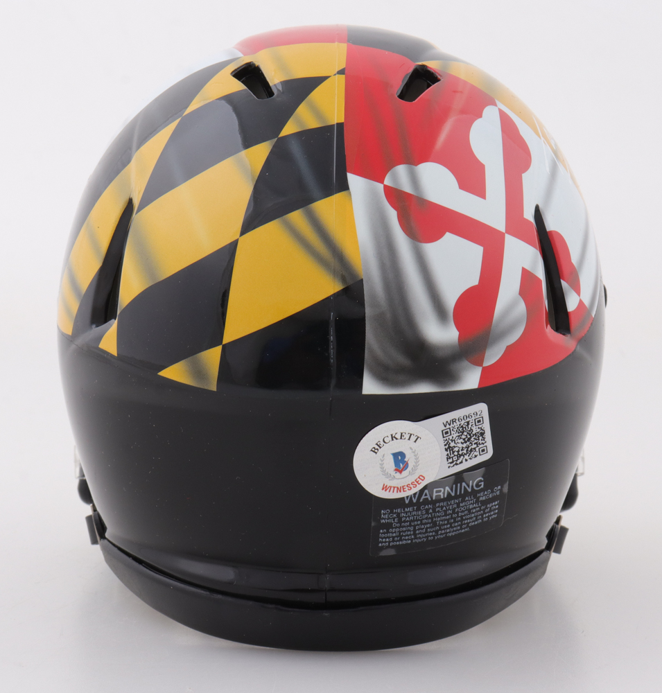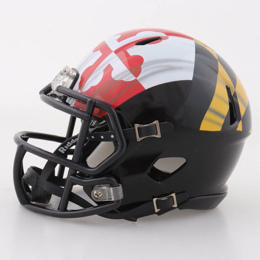 Riddell Maryland Terrapins Speed mini helmet. Hand-signed by Taulia Tagovailoa. Please note the signature is smudged.