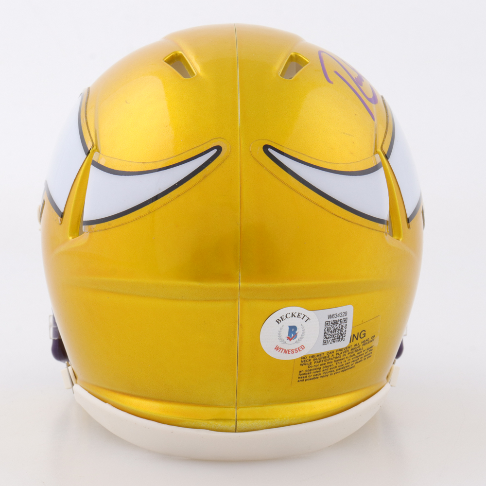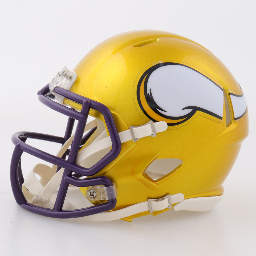 Riddell Minnesota Vikings flash alternate speed mini helmet. Hand-signed by Randy Moss (HOF).