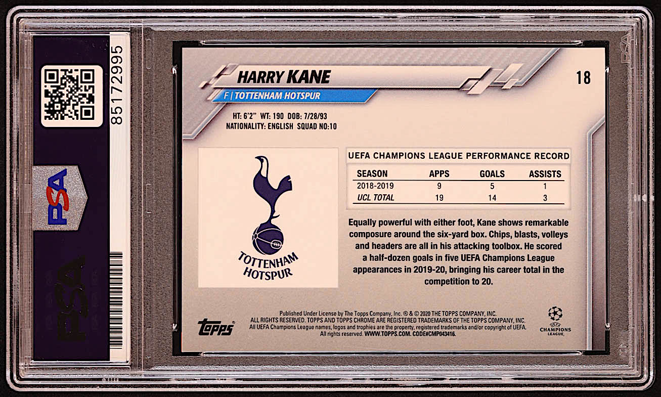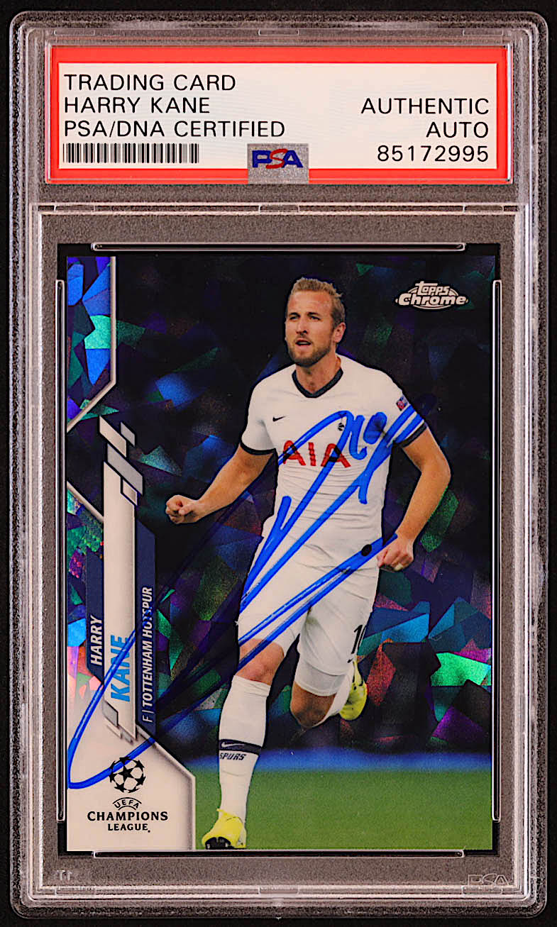 Harry Kane Signed 2019-20 Topps Chrome Sapphire UEFA Champions League #18 (PSA)