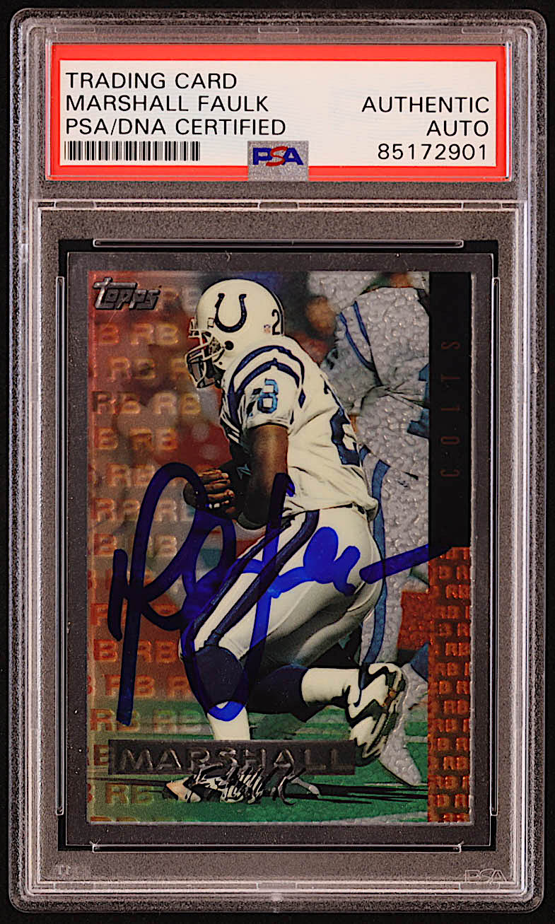 Card has been hand-signed by Marshall Faulk (Indianapolis Colts, HOF). Please see photos for more details regarding the condition of the card.
