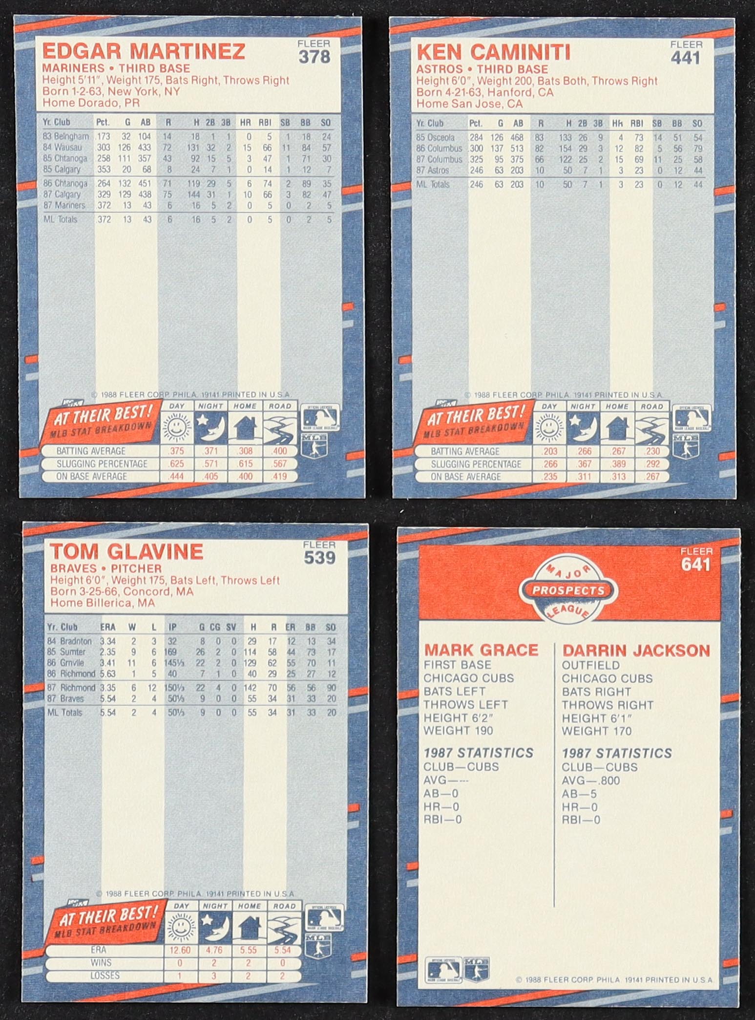 1988 Fleer Baseball Complete Set of (660) Cards with Edgar Martinez #378 RC, Ken Caminiti #441 RC, Tom Glavine #539 RC, Mark Grace RC