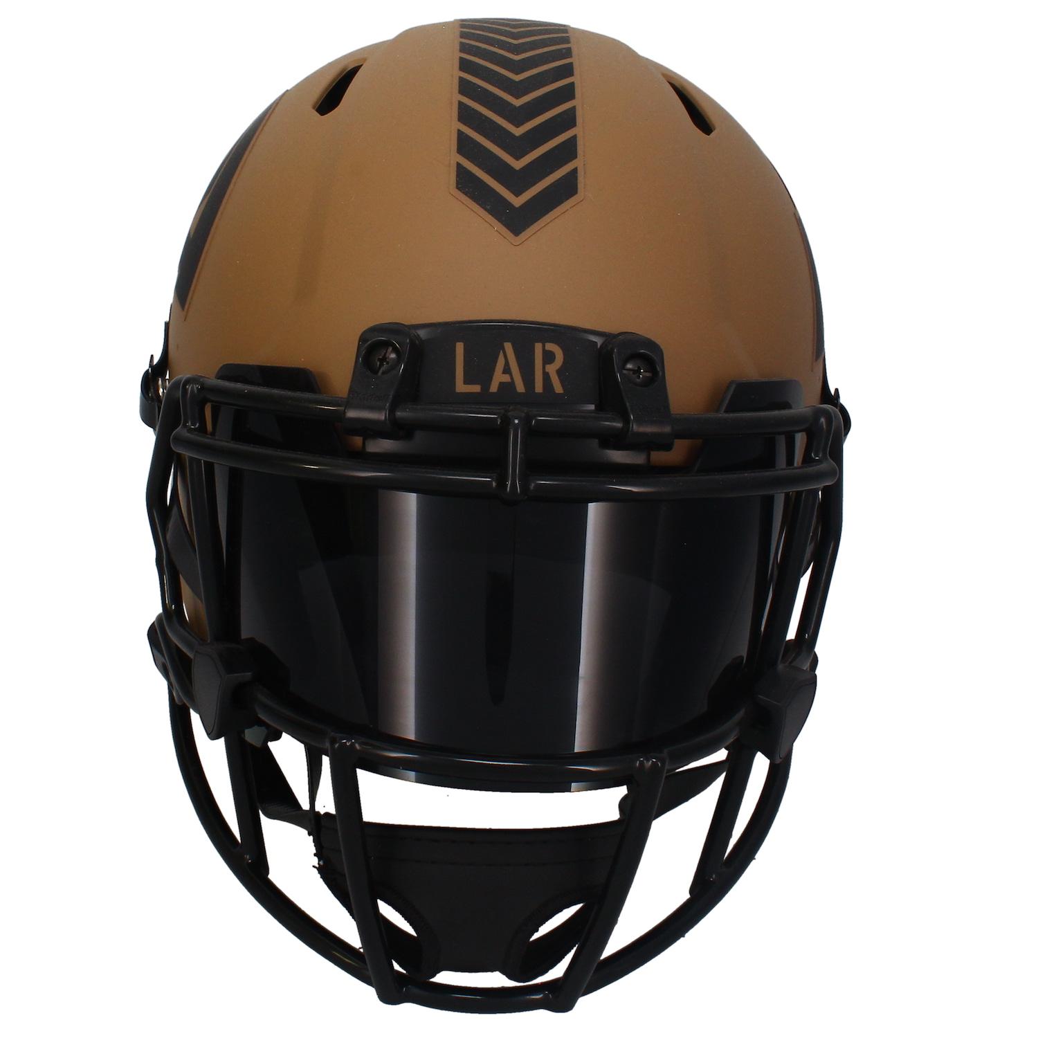 Riddell Los Angeles Rams 2023 Salute to Service Full-Size Authentic On-Field Speed Helmet with Visor. Hand-signed by Kyren Williams.